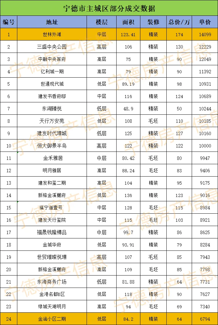 小编收集到的宁德主城区已成交的部分二手房数据,总数据具体如下: