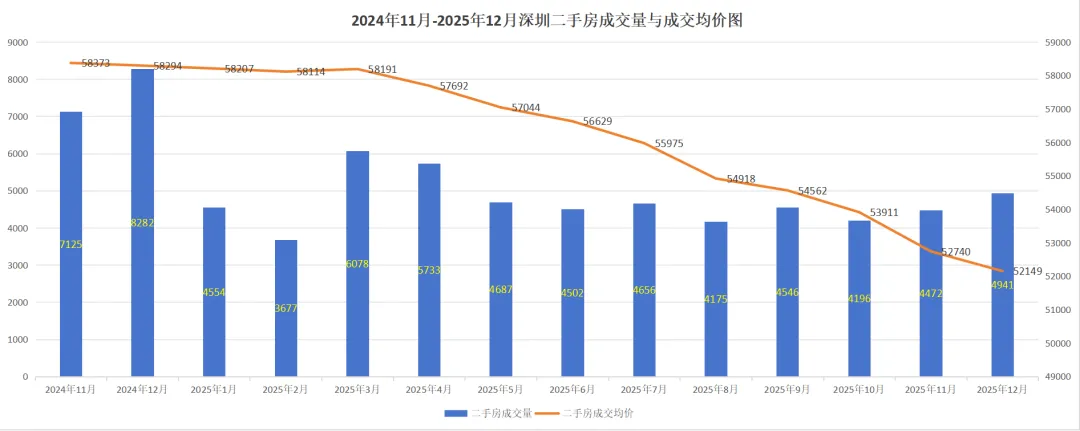 2024年11月-2025年12月深圳二手房成交量与均价图: