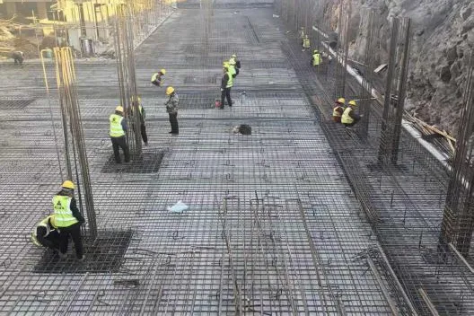 ▲南区一期棚改安置房1-4号楼之间地下车库筏板钢筋绑扎完成50%