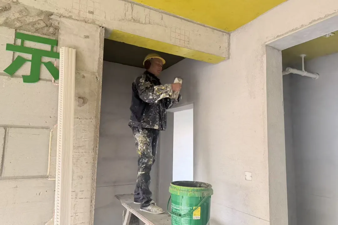 ▲冬青二期1-5号楼室内顶棚抹灰施工