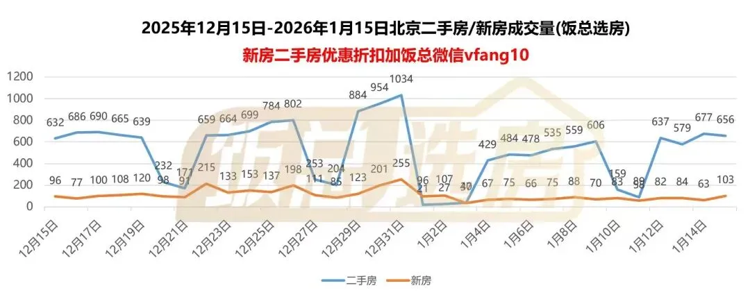 >1月1号-15号北京二手房住宅网签5976套,15号656套
