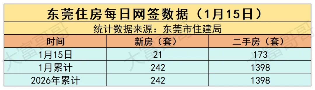东莞市住房网签数据(1月15日)