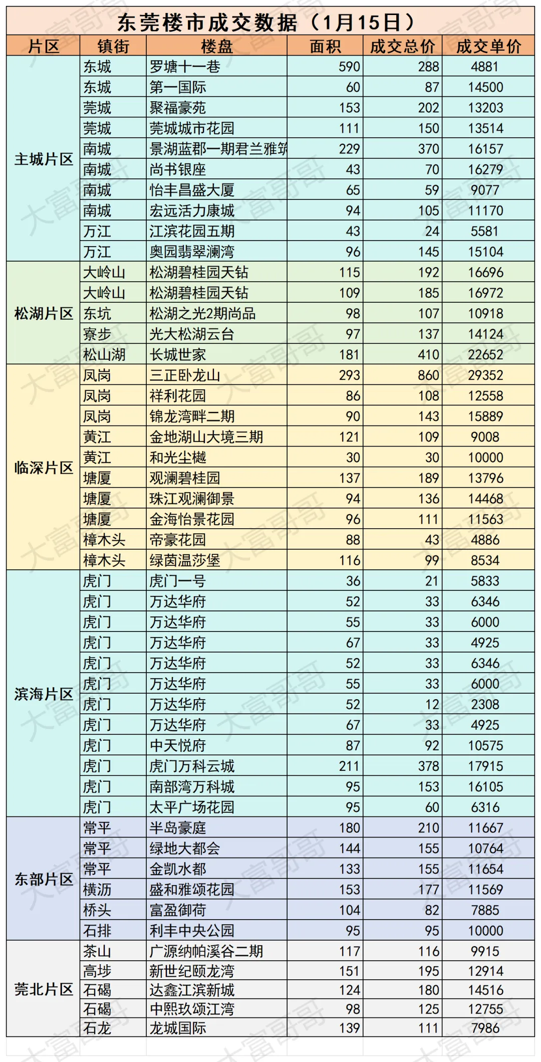 东莞市每日成交数据(1月15日)