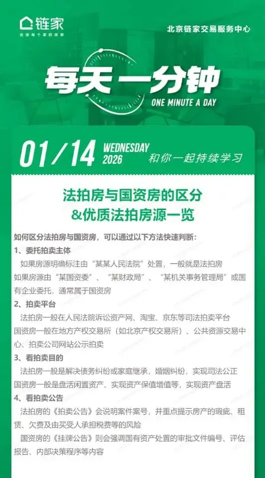 如果你想了解北京某区域的法拍房/国资房具体房源,或者需要专业的“尽调+竞拍”指导,欢迎联系北京链家交易服务中心,我们的专业顾问会为你一对一答疑~(本文房源信息及政策解读由北京链家交易服务中心提供,具体以实际为准。)