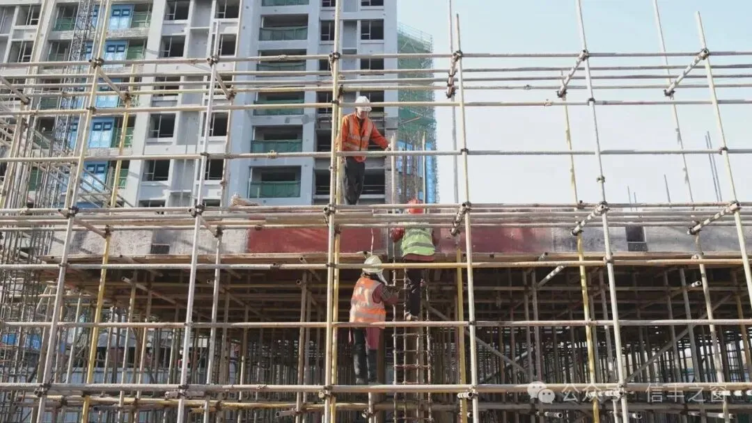 近日,记者来到赣州信丰县城北安置小区项目建设现场,二期正在建设当中,200多名工人正在赶工期、抢进度。