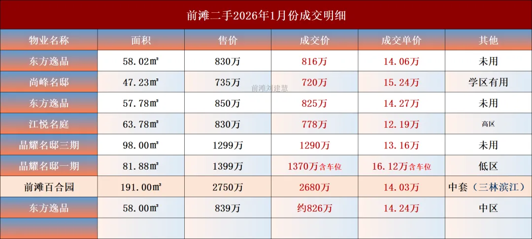 >2026年1月 前滩二手房最新挂牌