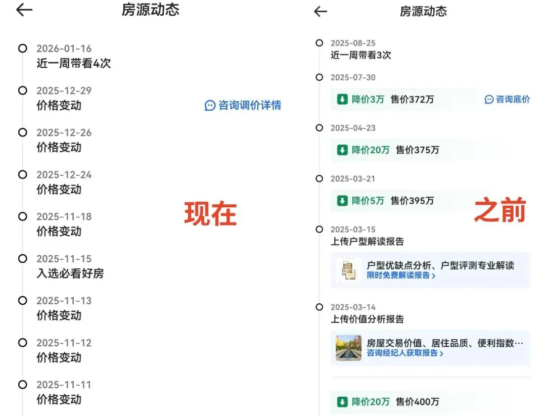 对业主而言,以往可通过同类房源调价记录来辅助定价,现在只能看到静态挂牌价,缺乏动态市场反馈。