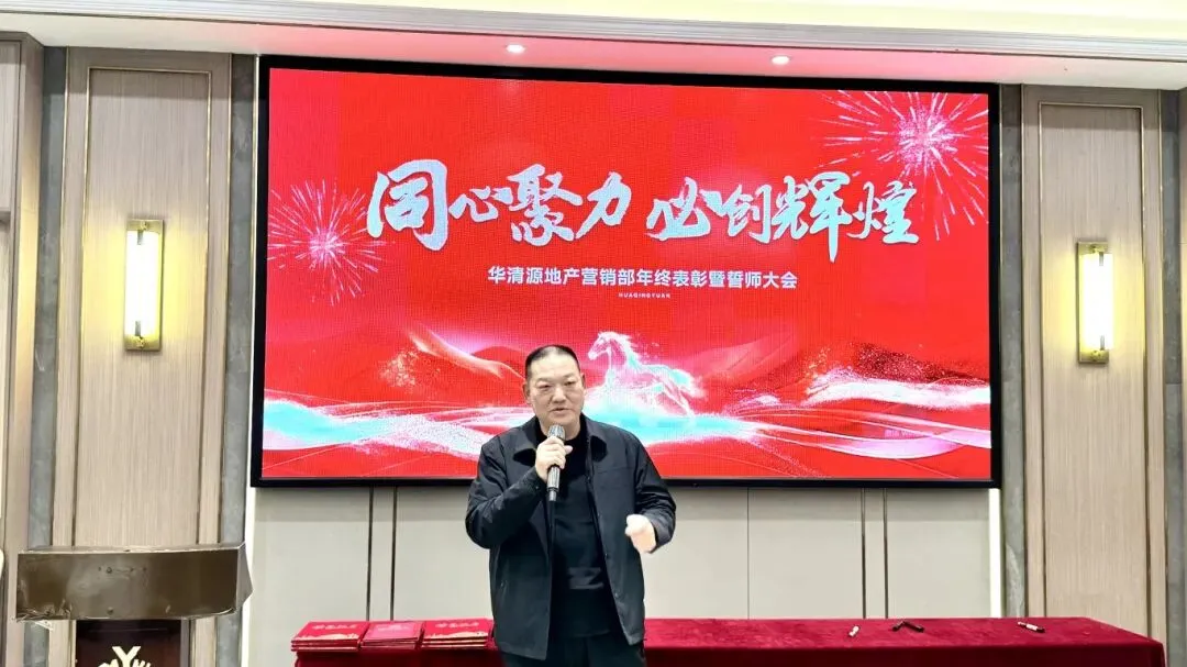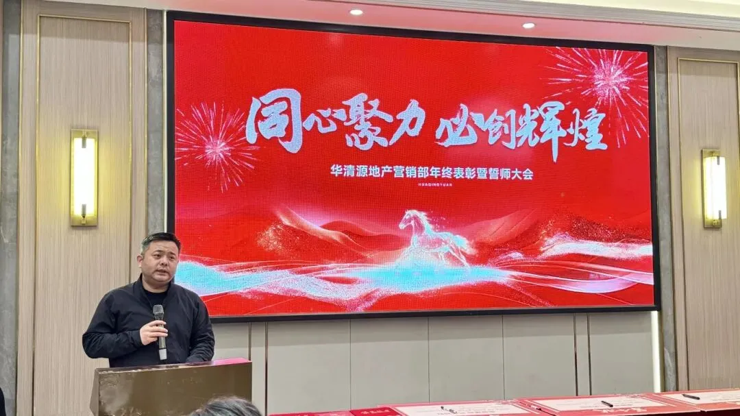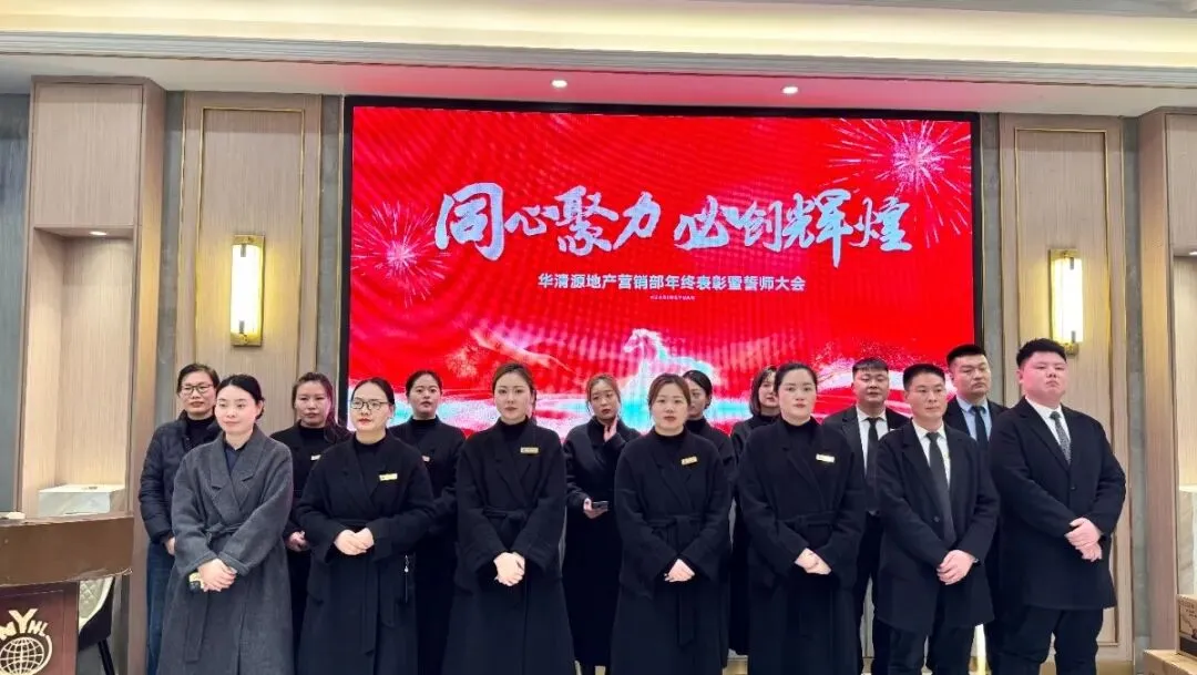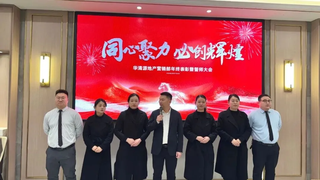 乘风破浪又一载,凝心聚力创未来。1月15日华清源地产营销部年终表彰暨誓师大会隆重召开。华清源地产三个项目营销团队齐聚一堂,以总结展望为新的起点,蓄力新征程,激昂再出发,共同擘画2026年崭新蓝图。