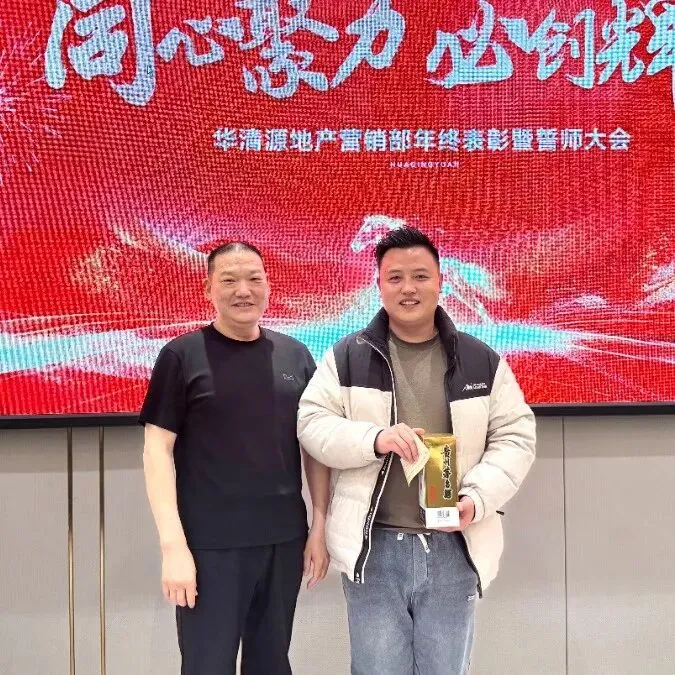 汇报结束后,华清源地产董事长马总为刘总及三大项目负责人颁发奖品,这份荣誉既是对他们过往工作的高度认可,也彰显了公司对核心骨干的重视与激励,现场掌声雷动。