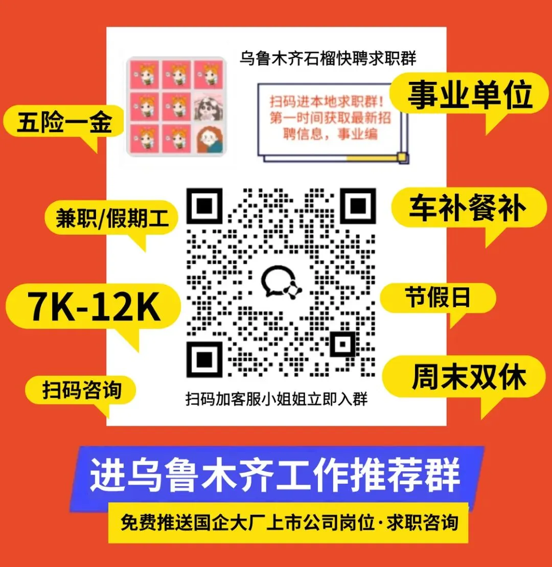 ☟戳下方“阅读原文”,进入乌鲁木齐石榴快聘!
