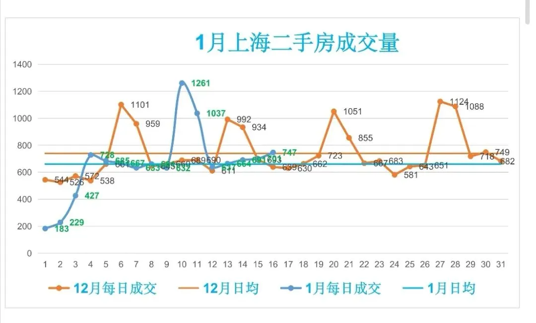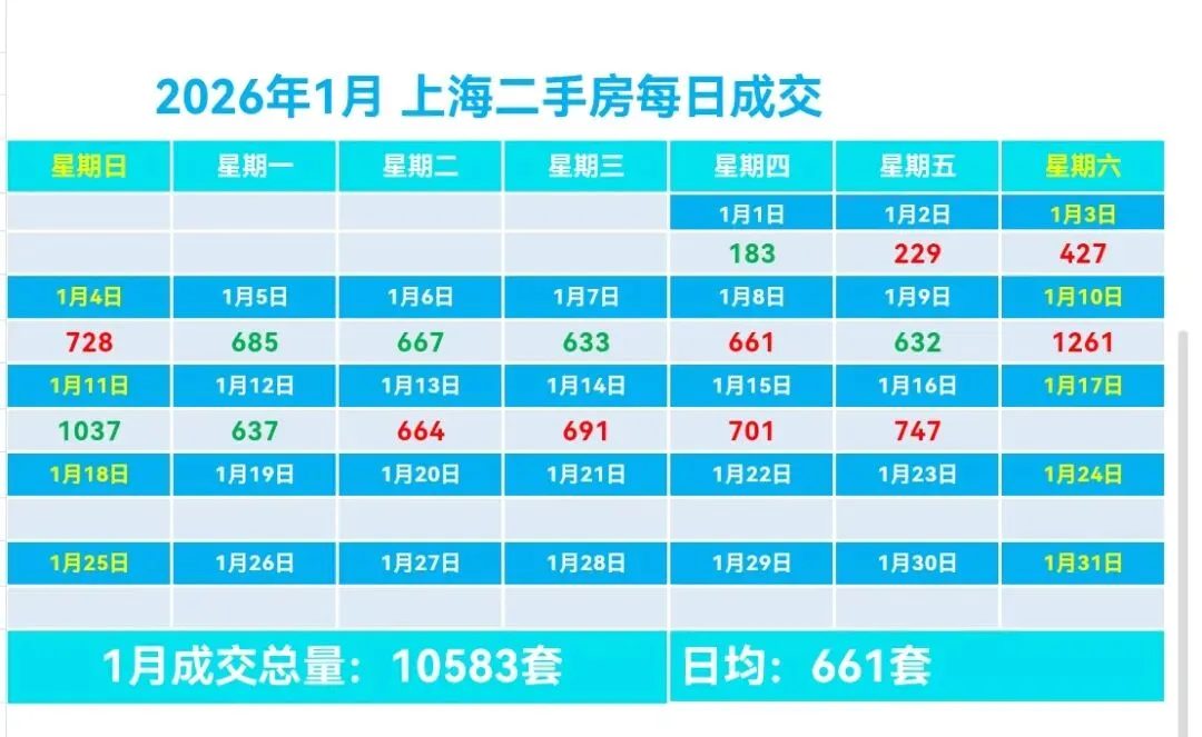🏡1月,上海二手房成交量累计10583套,日均成交661套,较上个月日均减少79套(降幅10.68%)。