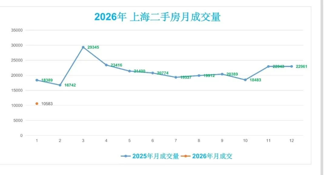 ♻️截止2026年1月16日,2025年上海二手房成交量合计254091套,月均21174套。