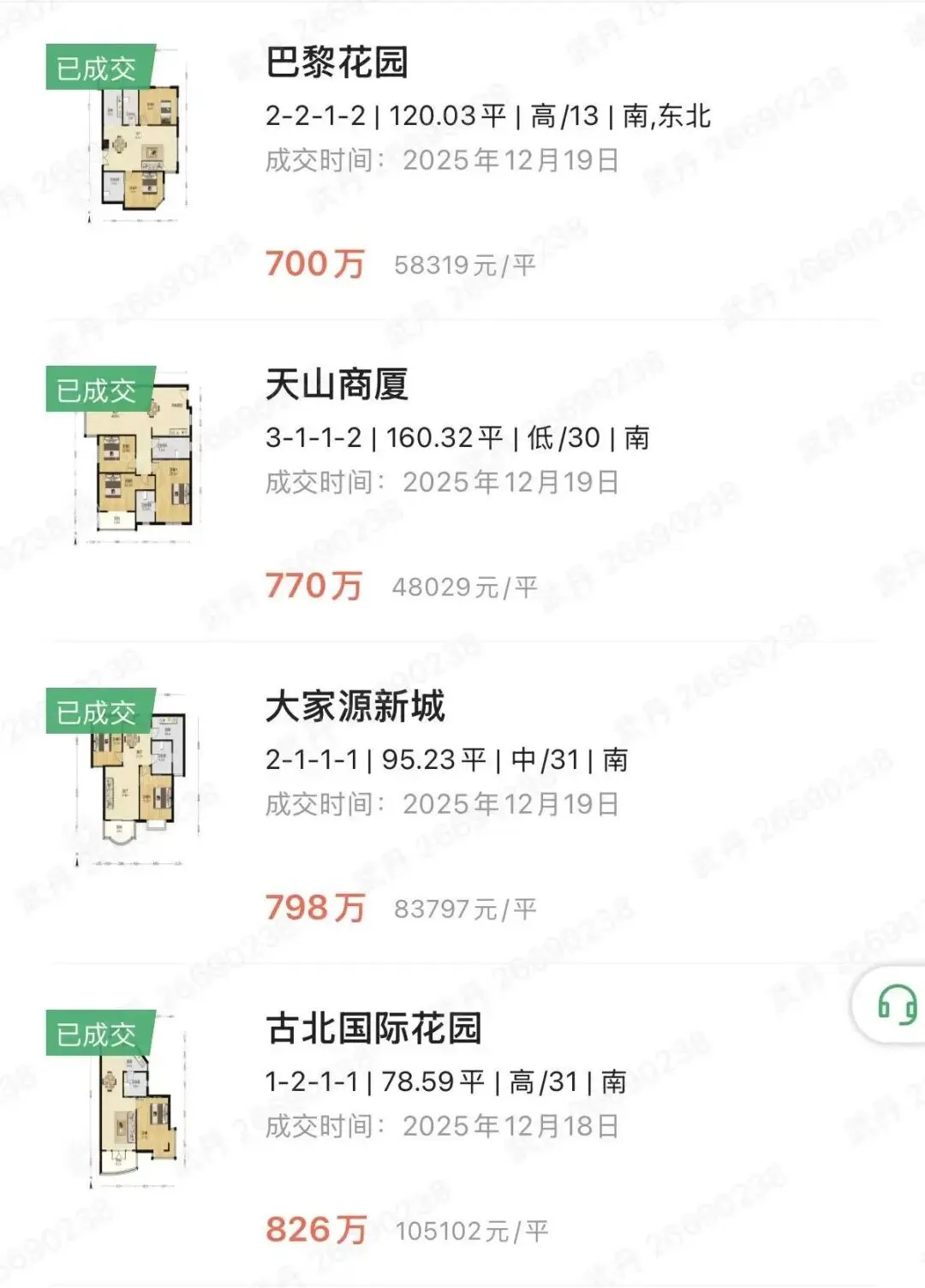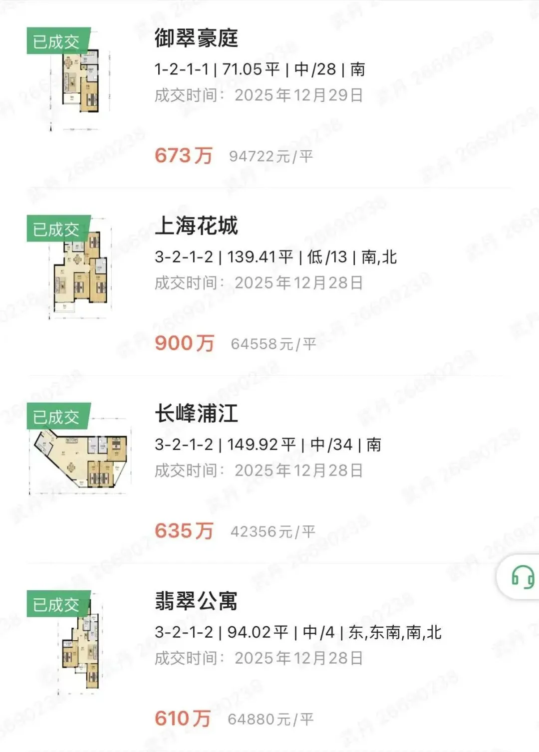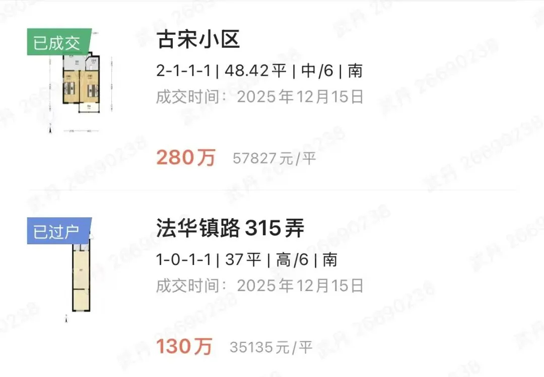 2025年12月下 成交价300-600万