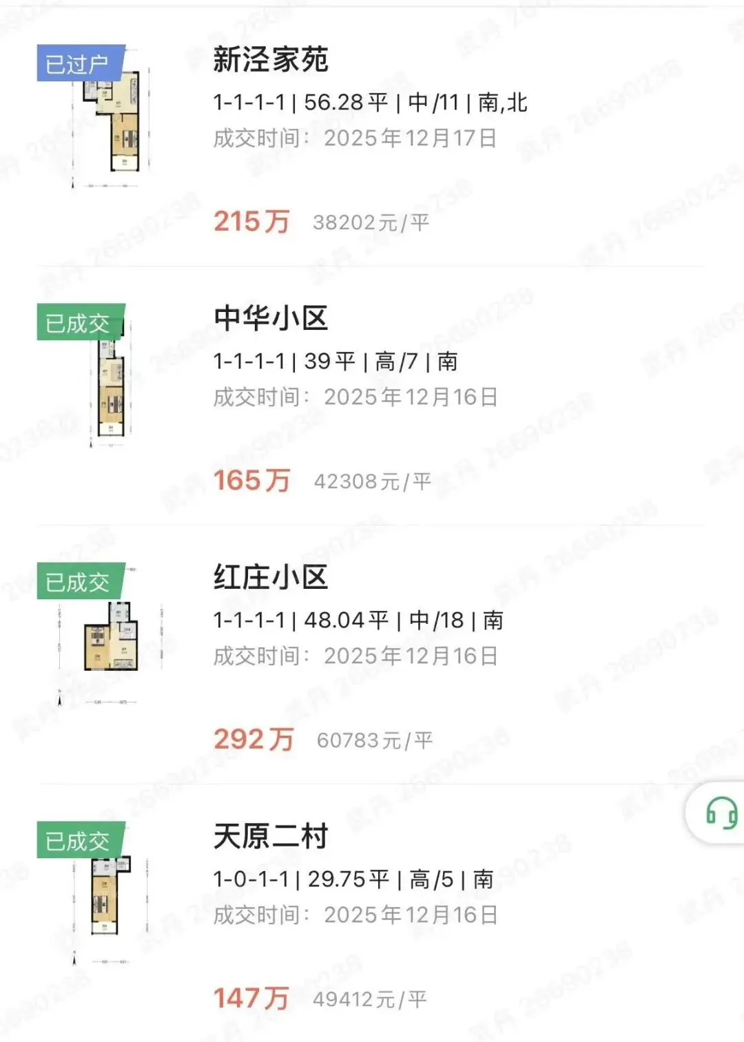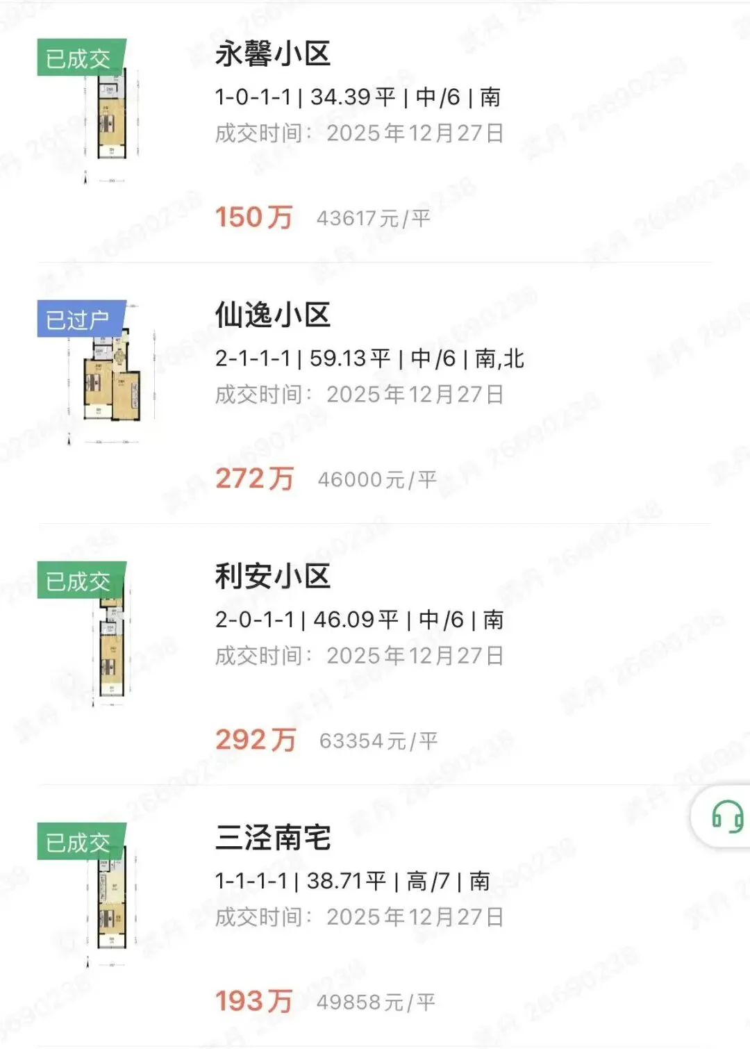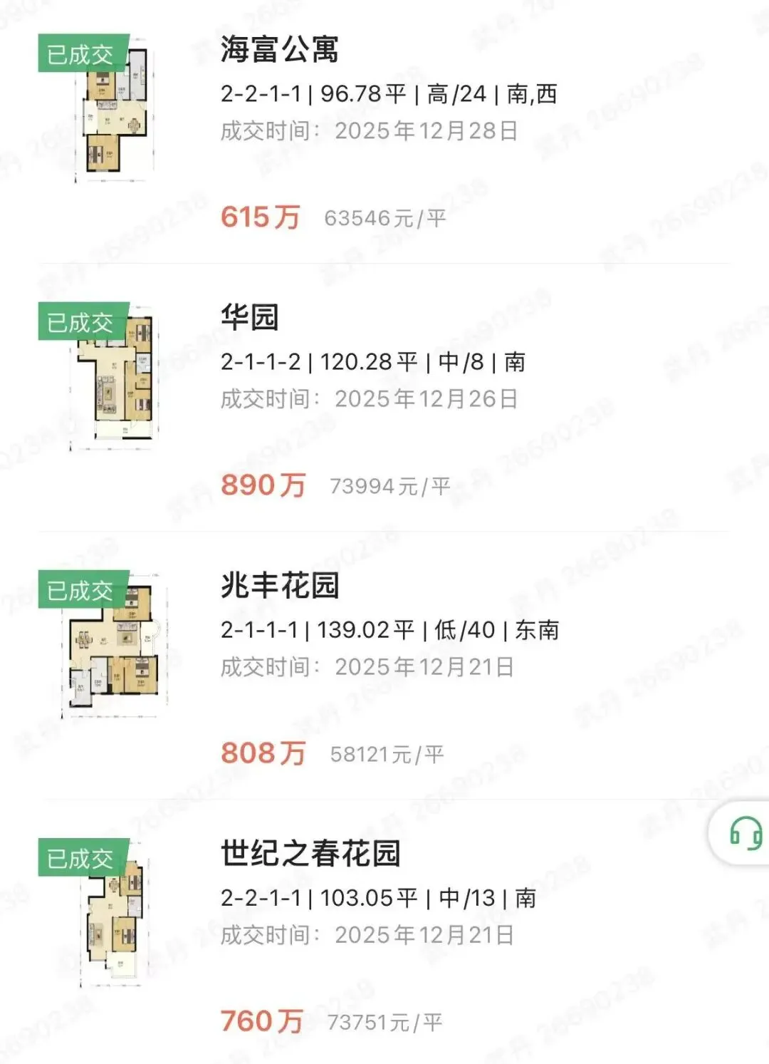 2025年12月下 成交价300-600万