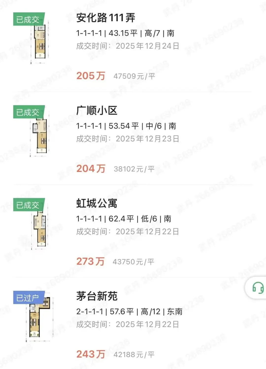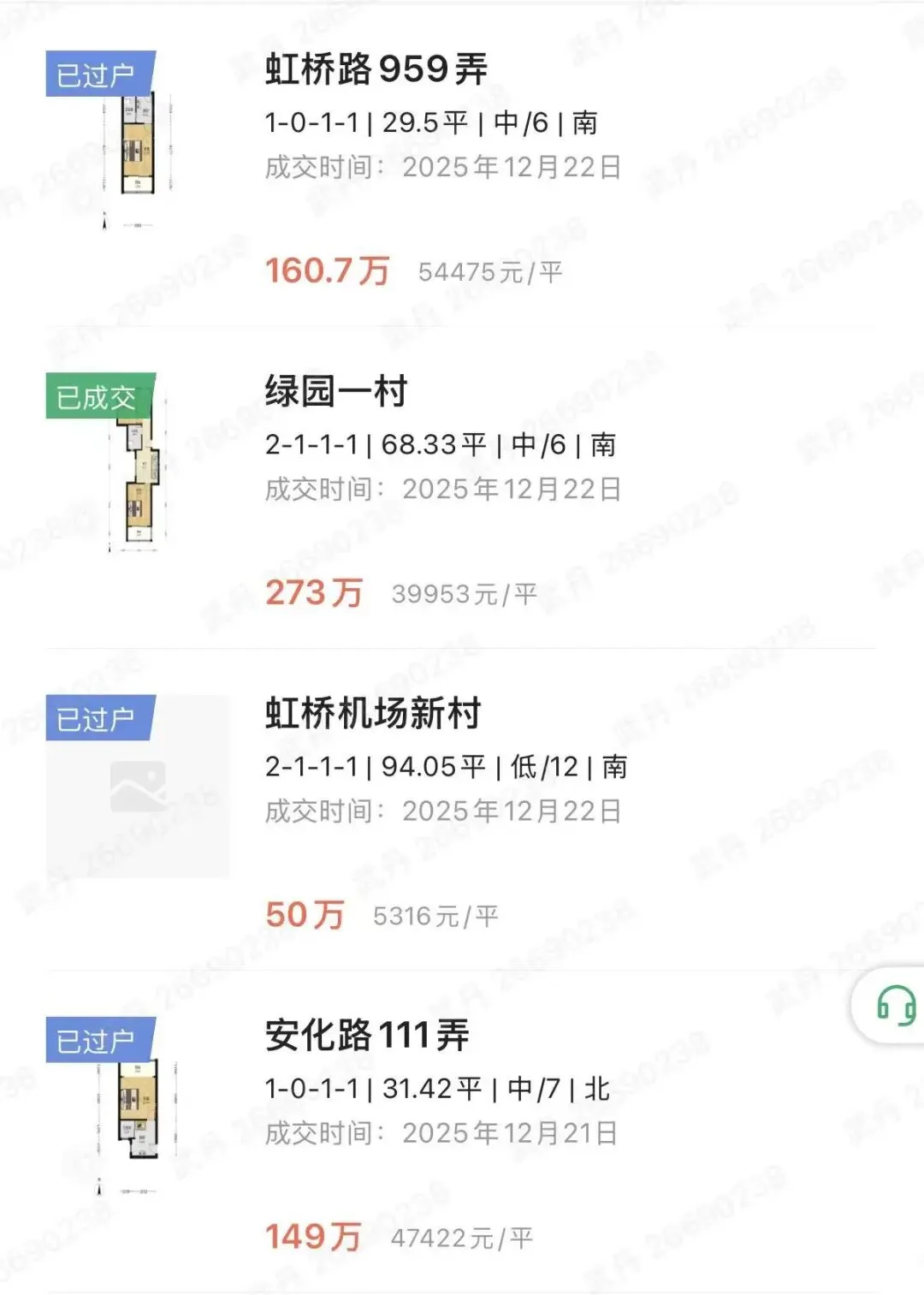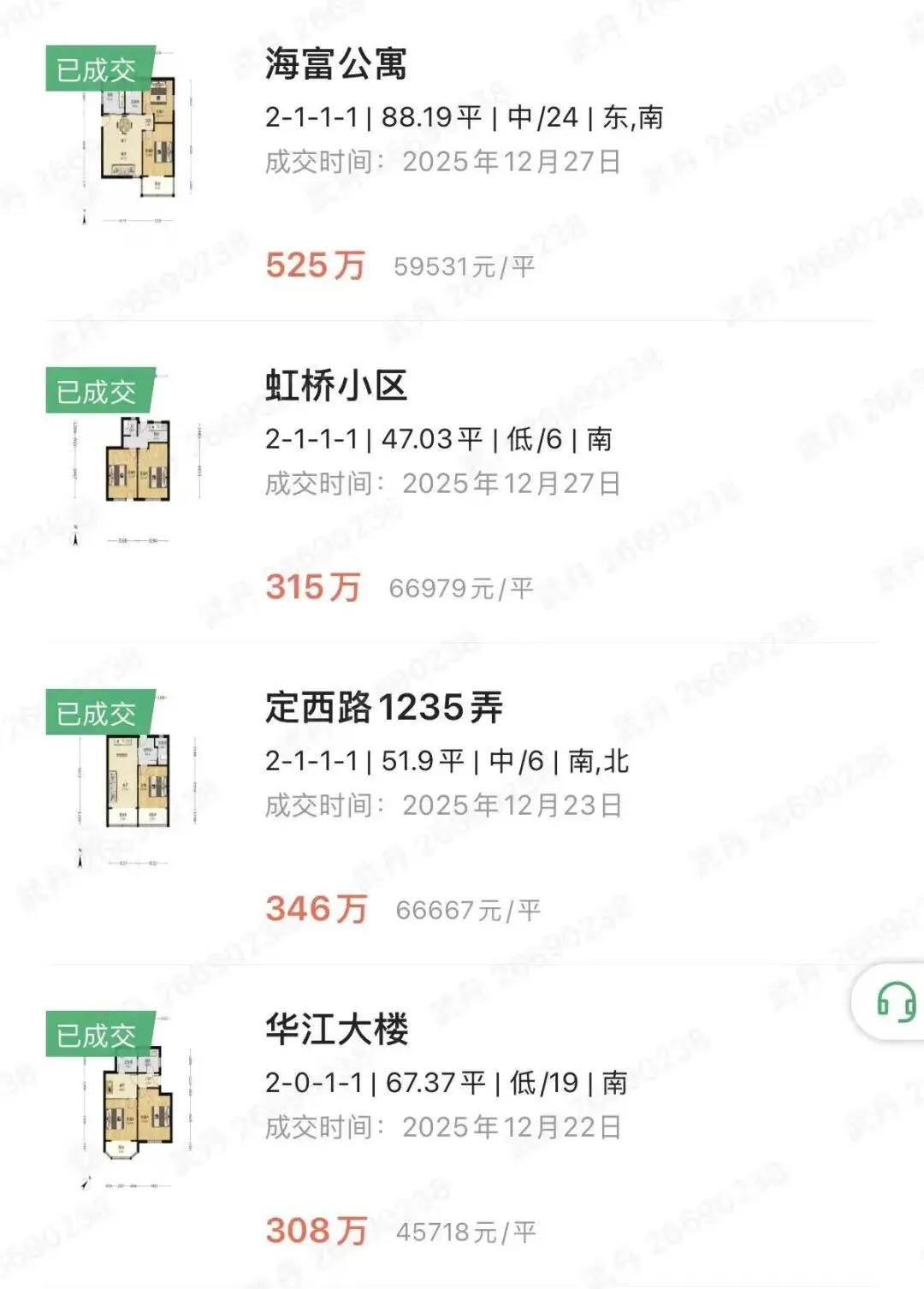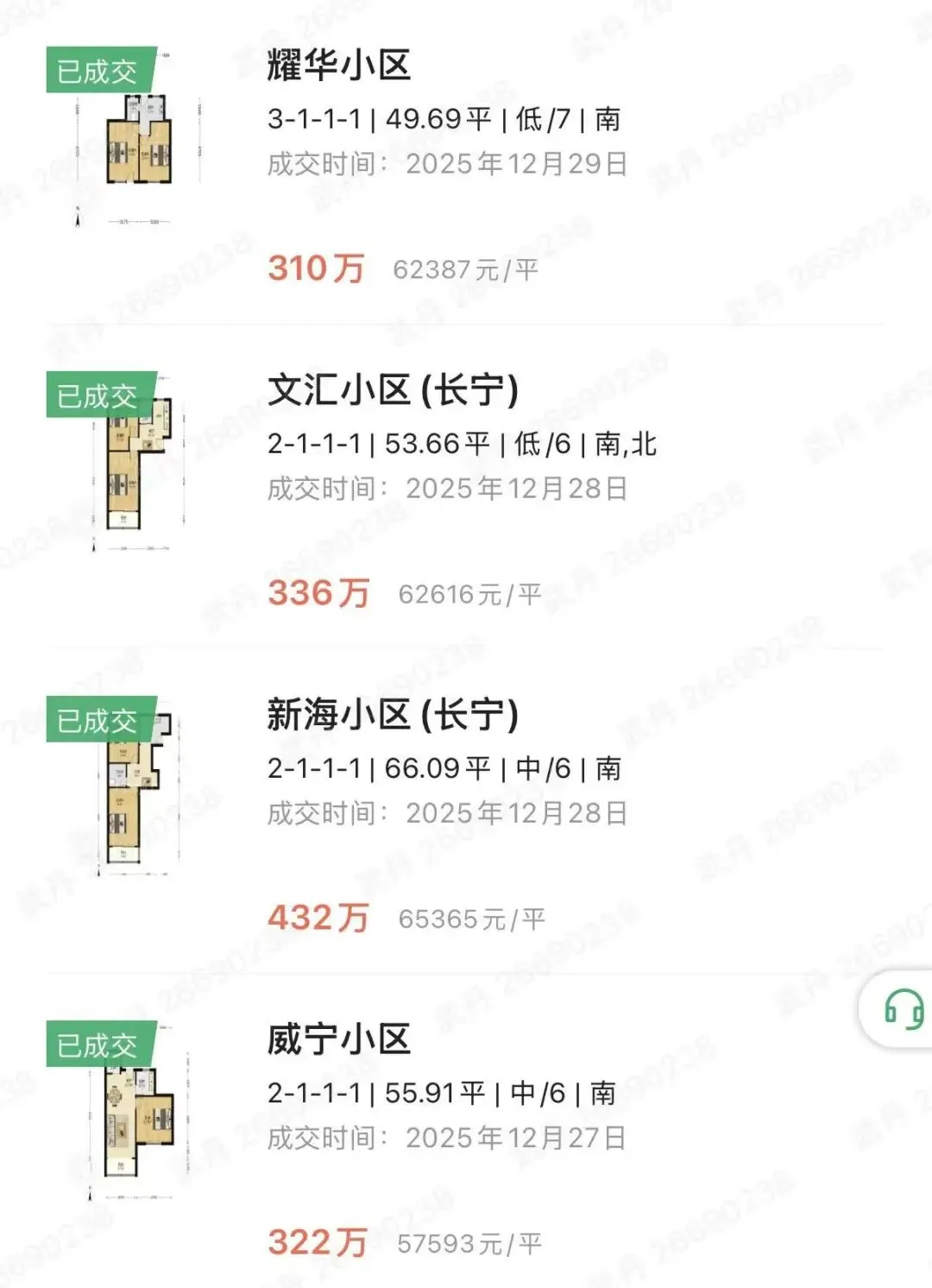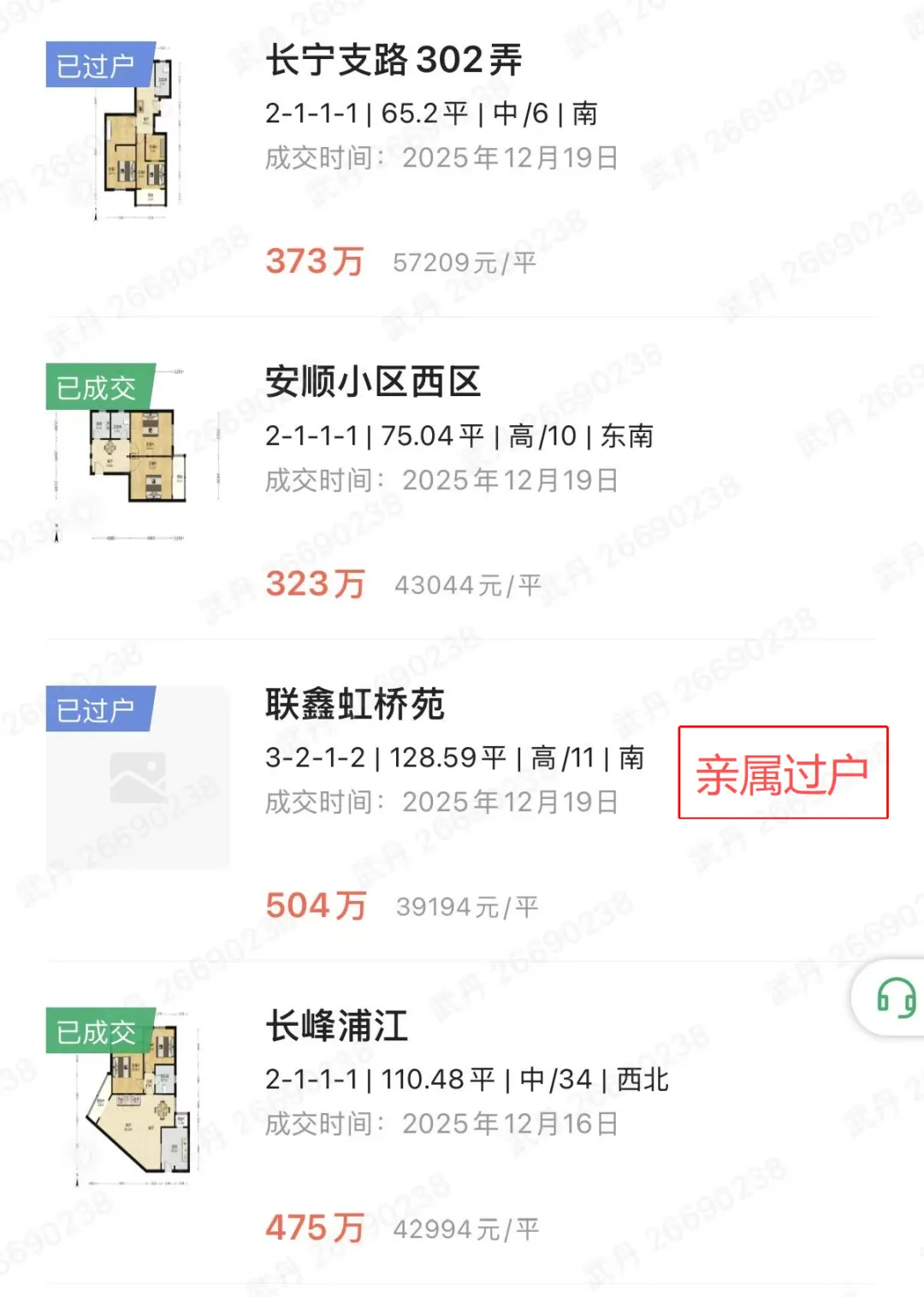 长宁二手房12月下旬成交统计
