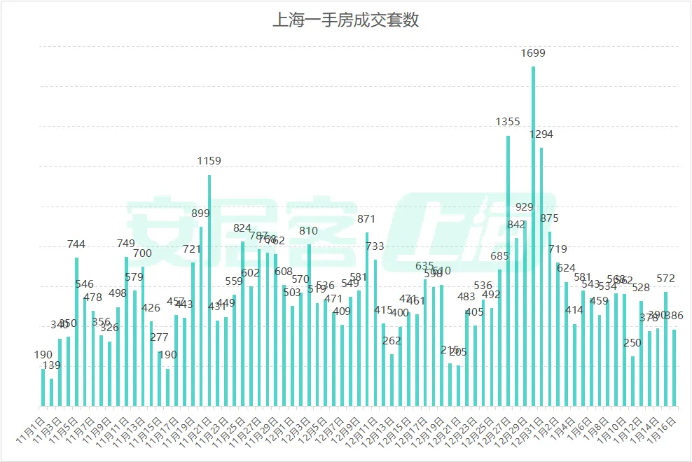 1月16日 周五,上海新房和上海二手房成交量合计1134套