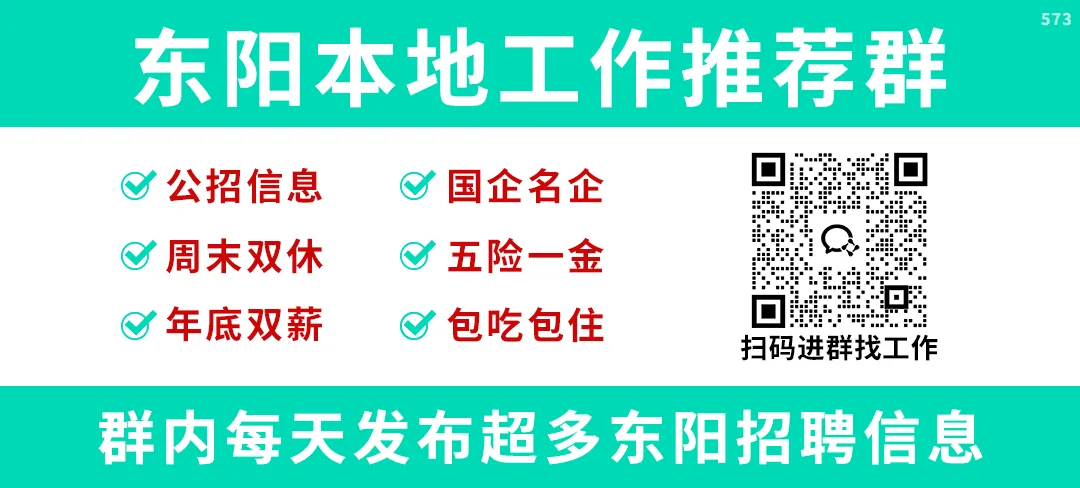 来源:东全招聘网(东阳全知道旗下本地招聘网站);企业招人加V:18157913919在东阳找工作