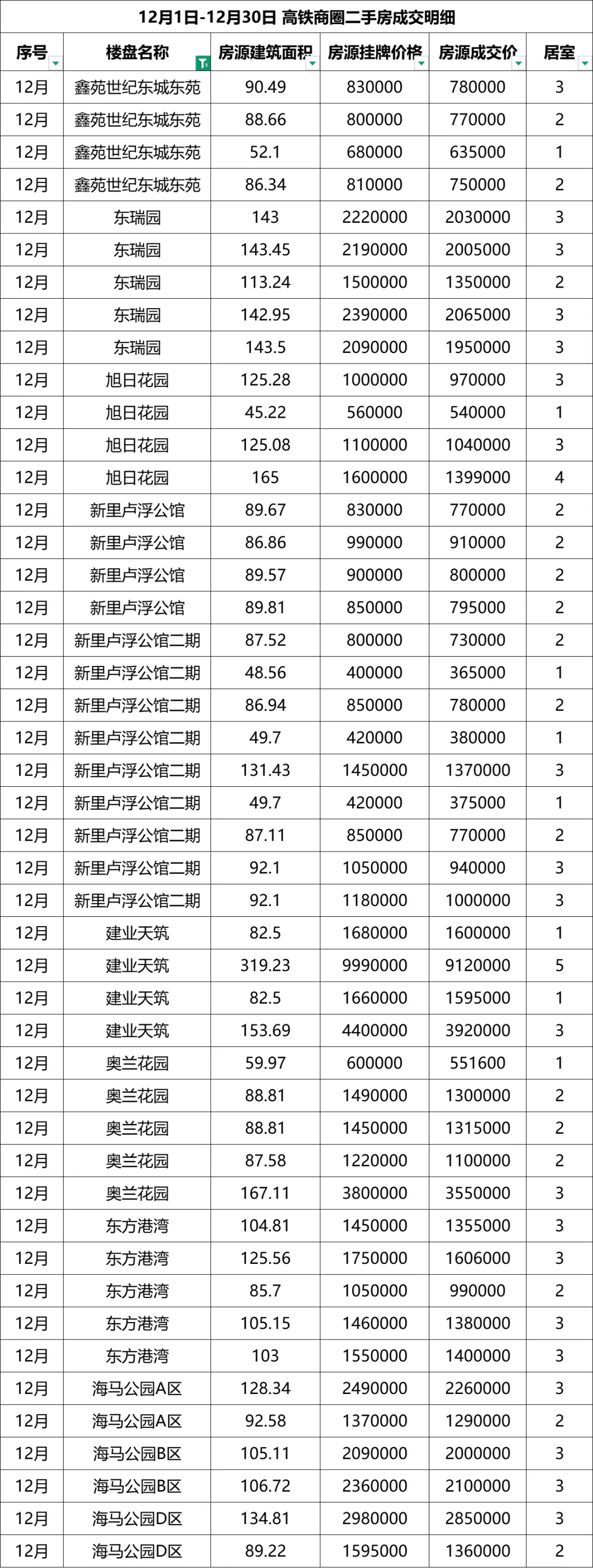 以下是统计到的-郑东新区高铁东站商圈二手房成交数据(部分):