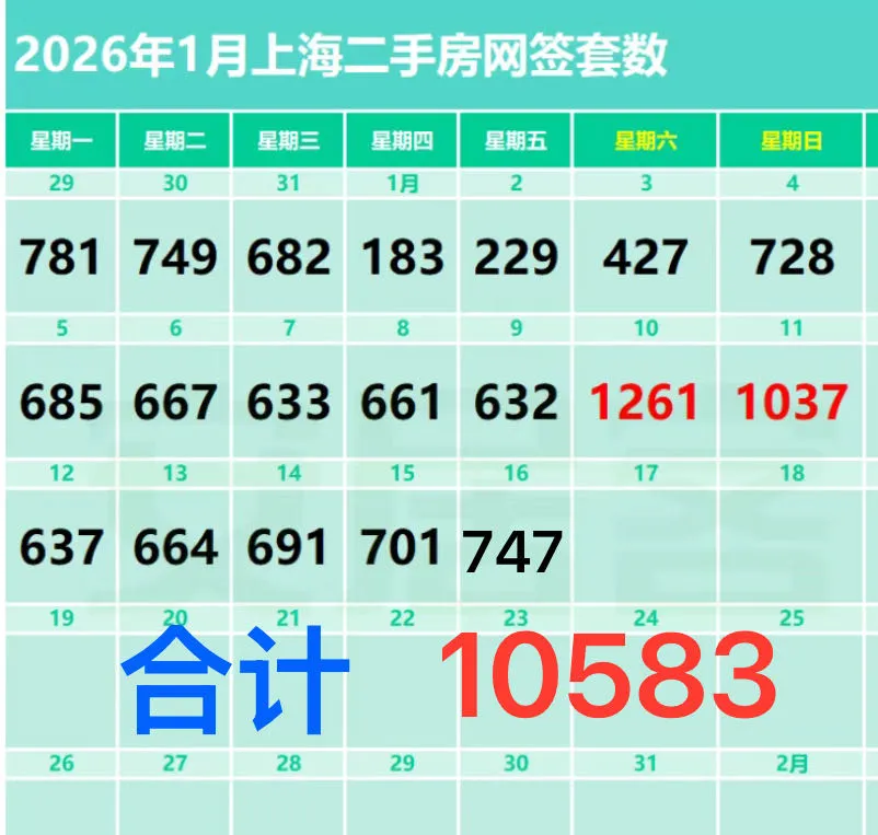 昨天上海二手房继续爆发,工作日成交747套,月度来到10583套(还是元旦缺席三天背景下)。新房成交387套