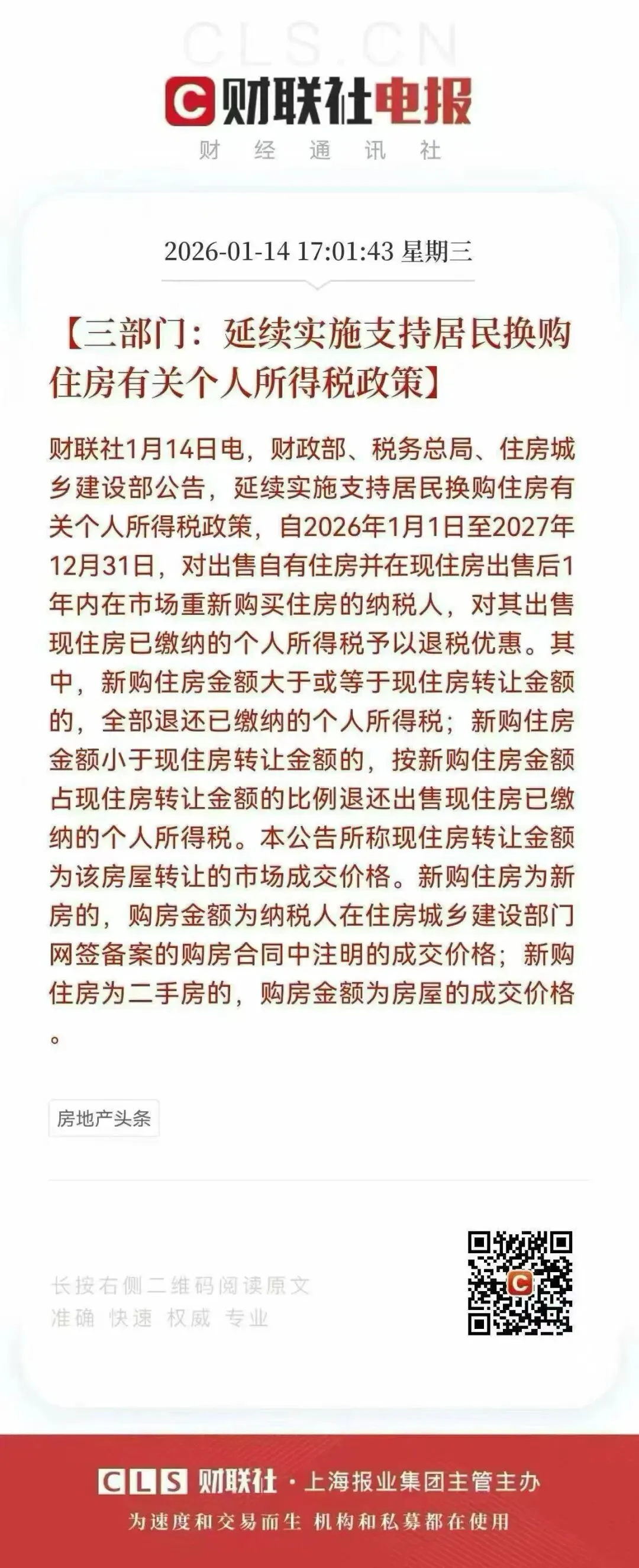 二、换房个税退税继续延续2027年底