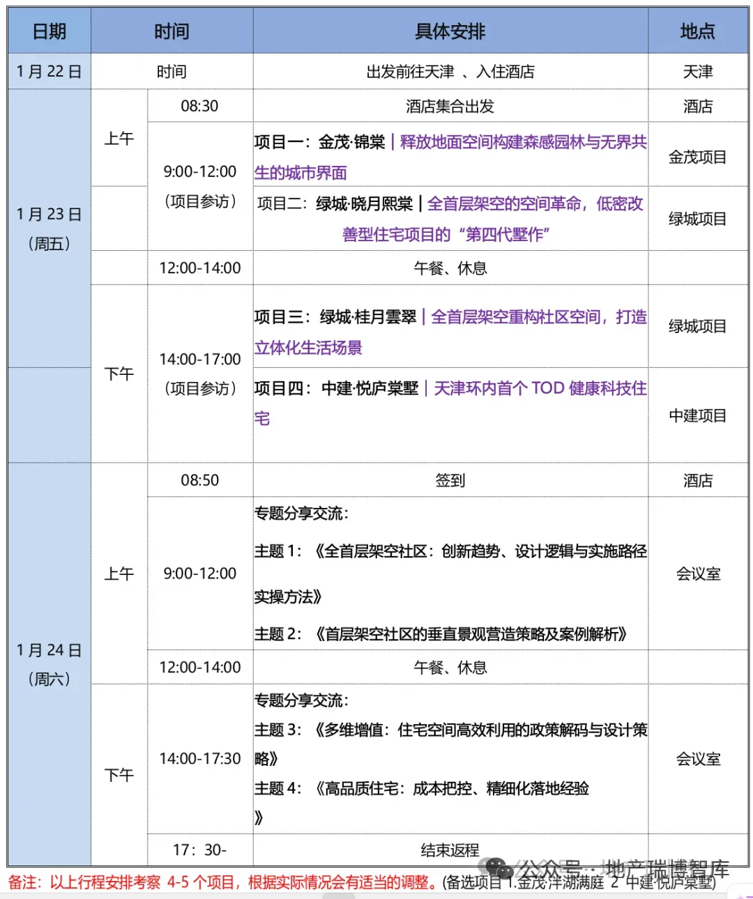 温馨提示:2026年1月23-24日【天津】《全首层架空新模式:产品迭代与地库、景观一体化设计的融合探索》研学活动,本次参观4-5个项目+1天分享会,部分项目根据现场情况可能会有调整。感兴趣的朋友请及时报名。