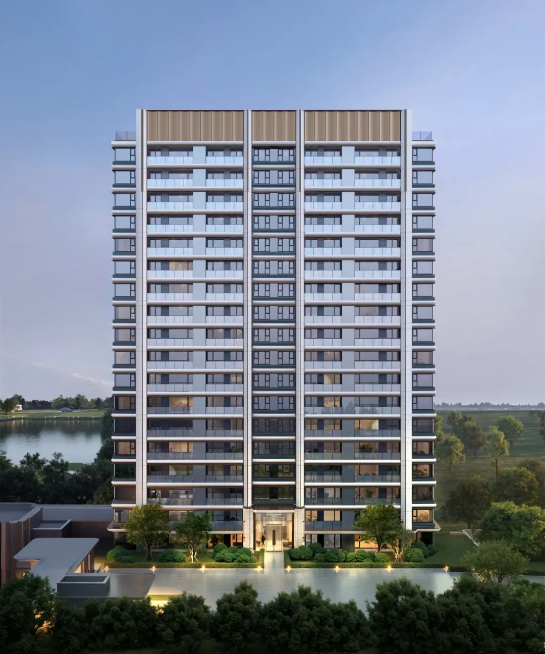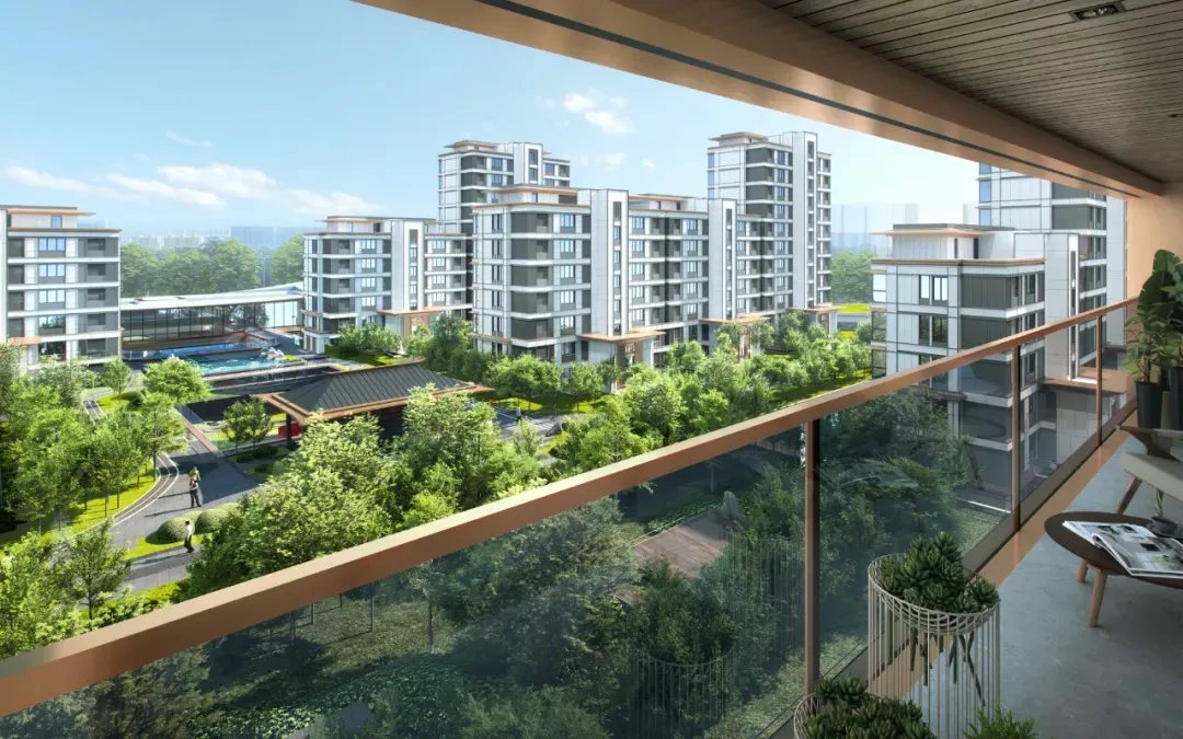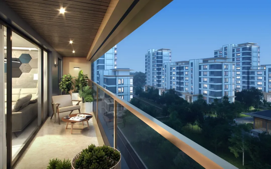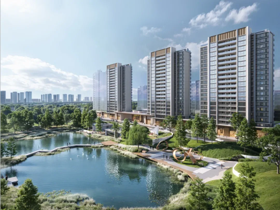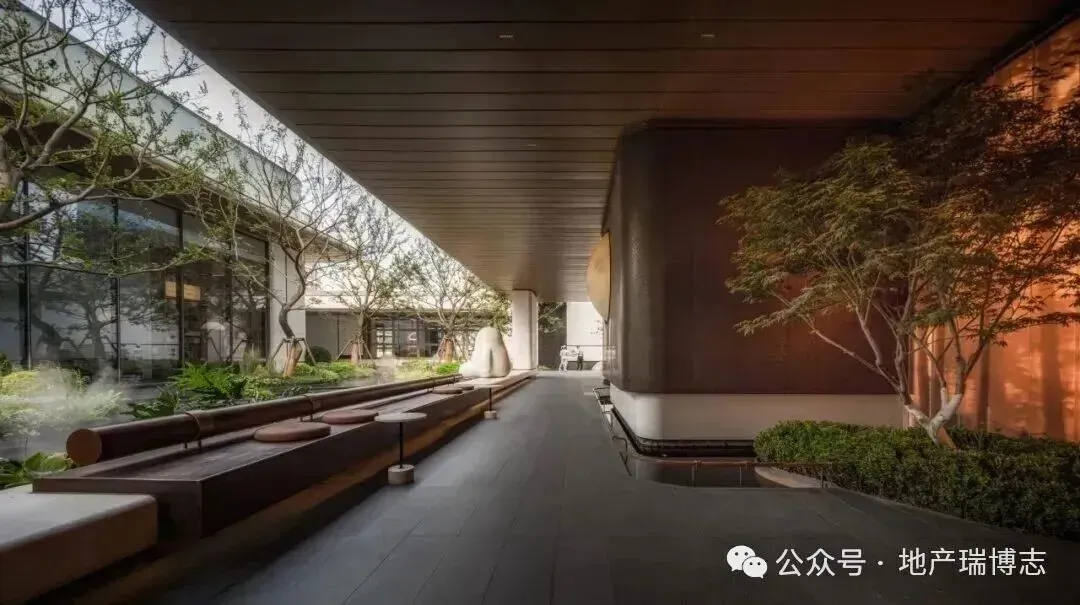 ▲开敞式阳台示意效果图 03 金茂·泮湖满庭 亮点:“局部下沉+双层架空”设计;上下「双重空间」 地点:天津 产品档案: 产品类型:高层、洋房 容积率:2.0 户型:约100㎡、120㎡的小高层,约130㎡、143㎡的洋房产品 项目总占地约3.15万㎡,总建筑面积约10.4万㎡,计容建筑面积约6.3万㎡,容积率2.0。4栋小高层+11栋洋房,自北向南呈阶梯状排布,构成错落递进的城市天际线。东西宅间也留出舒朗的空间,形成横约260米、纵约203米的十字景观轴带。 作为天津首个“满系”产品,金茂泮湖满庭将“艺术”、“摩登”写进生活的每一寸空间里。不仅地形就像一个T型舞台,还通过“横约260米,纵约203米”的两条轴线景观带,以及“局部下沉+双层架空”设计,将其转化成了3D立体的自然秀场。 金属屋檐划分出上下「双重空间」:下是商街的烟火繁华,上是社区的静谧尊崇。整条商街可不是单一铺面的「复制+粘贴」,而是高低错落、层次进退、「一铺一面」。特别是通过连续柱廊和屋檐,模糊室内外界限,营造出大量檐下灰空间,好似「海派骑楼」。