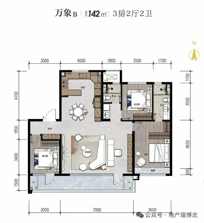 ▲建面约143㎡户型样板间