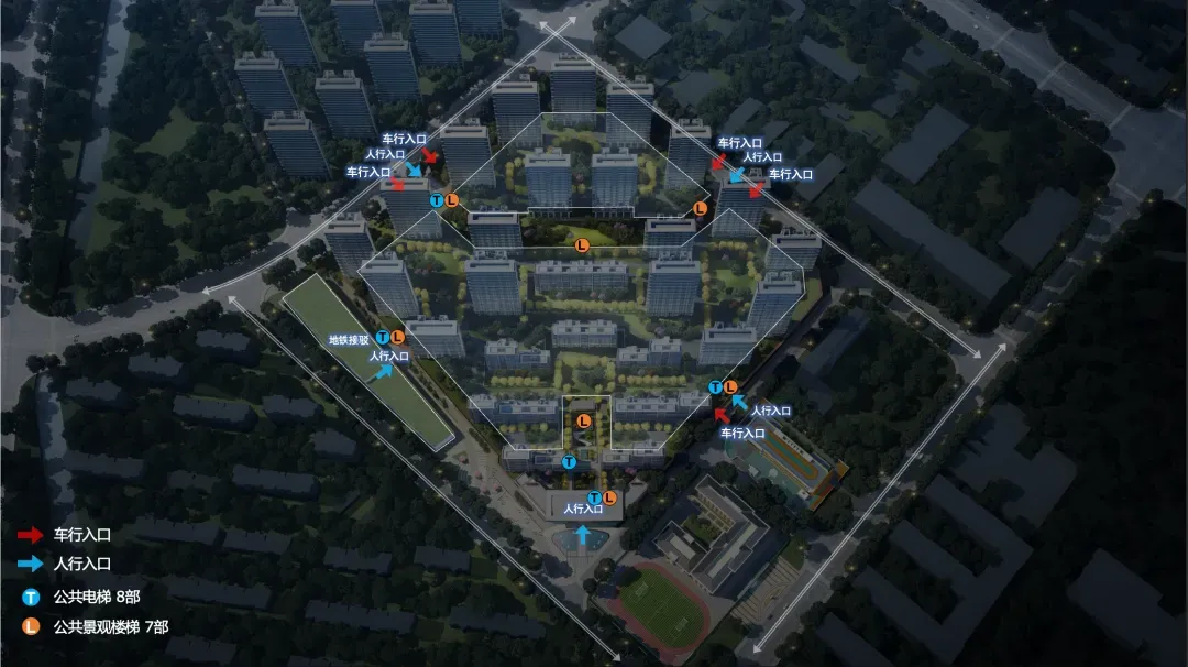 人车彻底分流:车辆停驻于架空层,地面空间全数归还给生活;