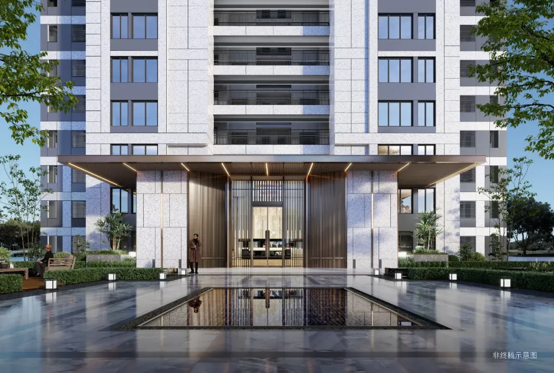 ▲归家动线示意 金茂锦棠的建筑立面,从项目LOGO中提取出生长线条,用于构建「向上生长」的建筑表情。以铝板在建筑外檐上勾勒出装饰框,远望下仿佛层叠的「流线画框」。南向的装饰框在楼顶与塔冠融合,最终汇聚成「海棠之芯」,如一棵向上生长的参天大树。