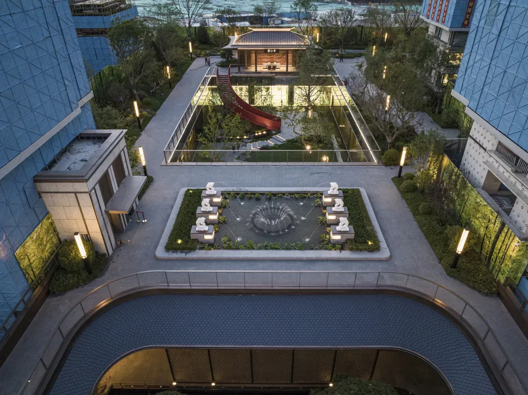 项目亮点:首层架空创新:5.6米架空层高度,社区外围环绕400米环形城市绿化,形成“悬浮”视觉。首层户型通过下沉庭院设计,实现“全明下跃立体宅”,私享独门独院空间。架空层顶部采用微地形术,局部垫高1.8米形成丘陵景观,下沉0.1-0.2米打造“绿谷坐席”。