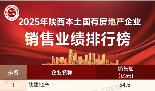 1月16日,中指研发布《2025年陕西本土国有房地产企业销售业绩排行榜》,陕建地产集团以34.5亿元的销售额再度位列榜首。自2021年以来,集团已连续五年蝉联陕西本土国有房地产企业销售业绩TOP1。
