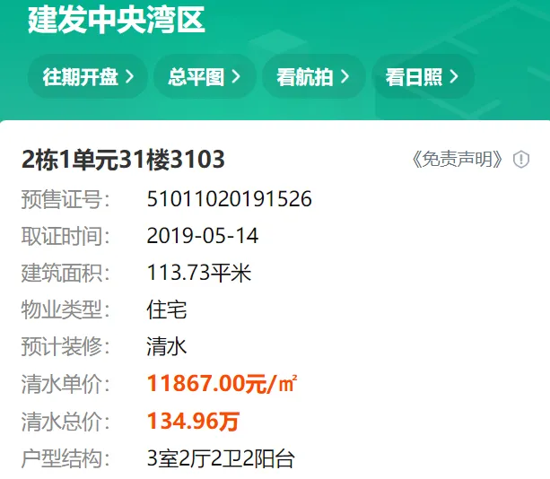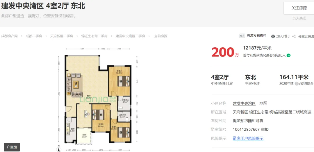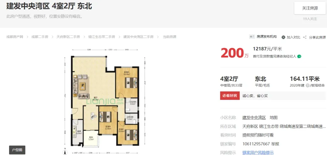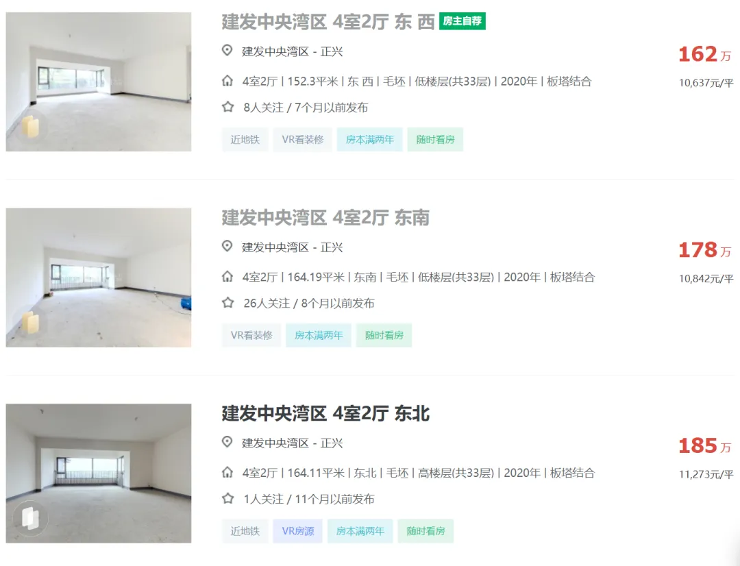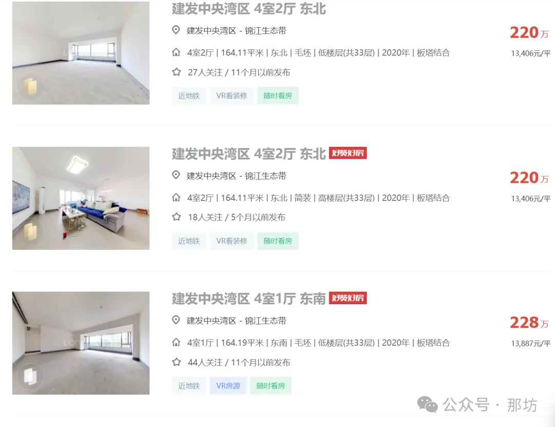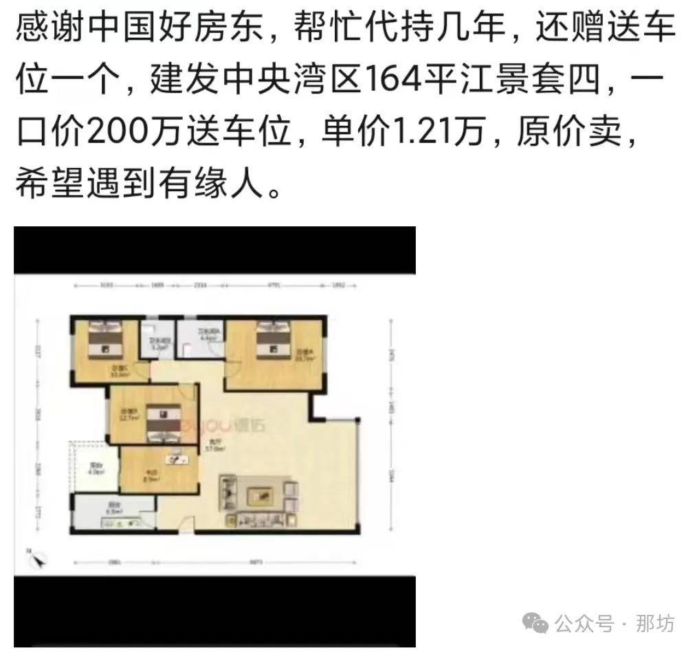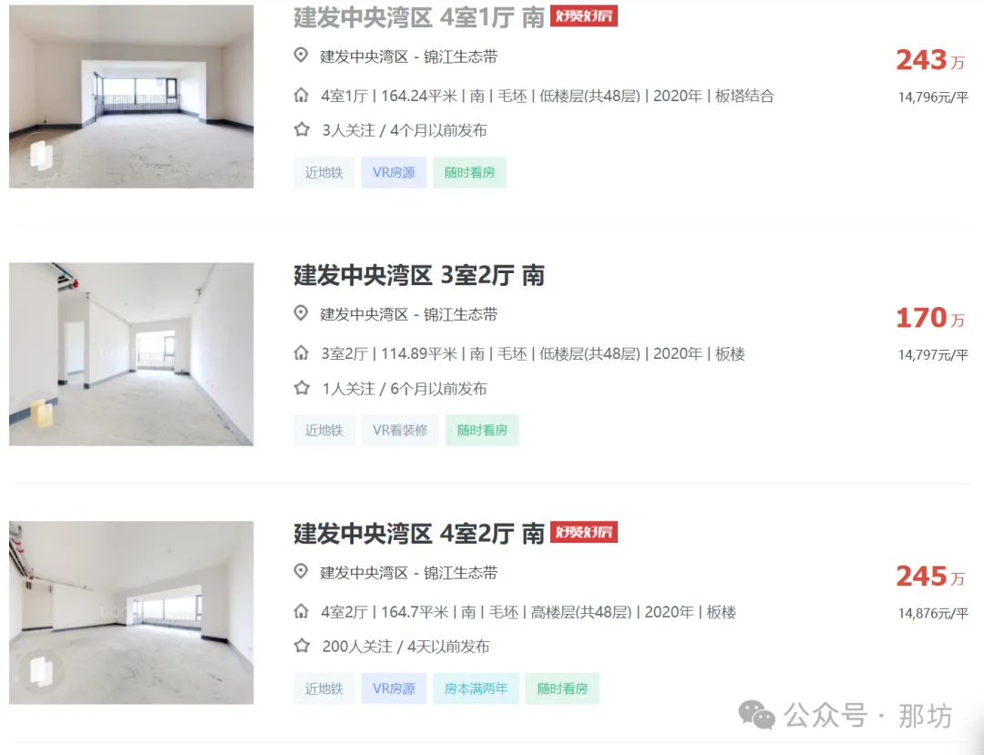 2024年04月05日,有多位中介发布信息:天府新区成都建发中央湾区164平江景套四一口价200万,还赠送车位一个,单价1.21万,原价卖希望遇到有缘人。