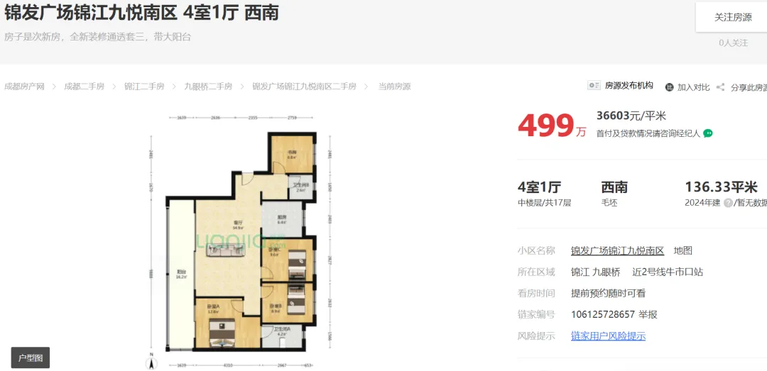 2026年01月13日,【那坊归心】成都武侯草金立交存量房(二手房)中铁建武侯樾府建面134平套四报价336万,是否适合90后?