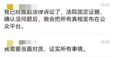 并且表示,自己也会固定全部证据,追求对方法律责任——