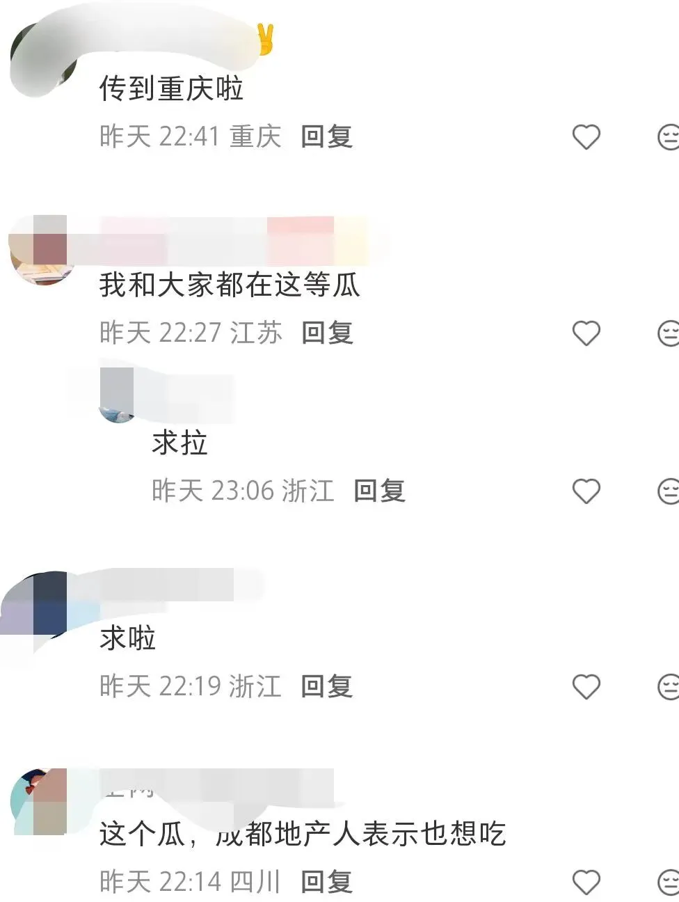 网友们纷纷表示吃瓜,并传达了重庆、浙江、四川——