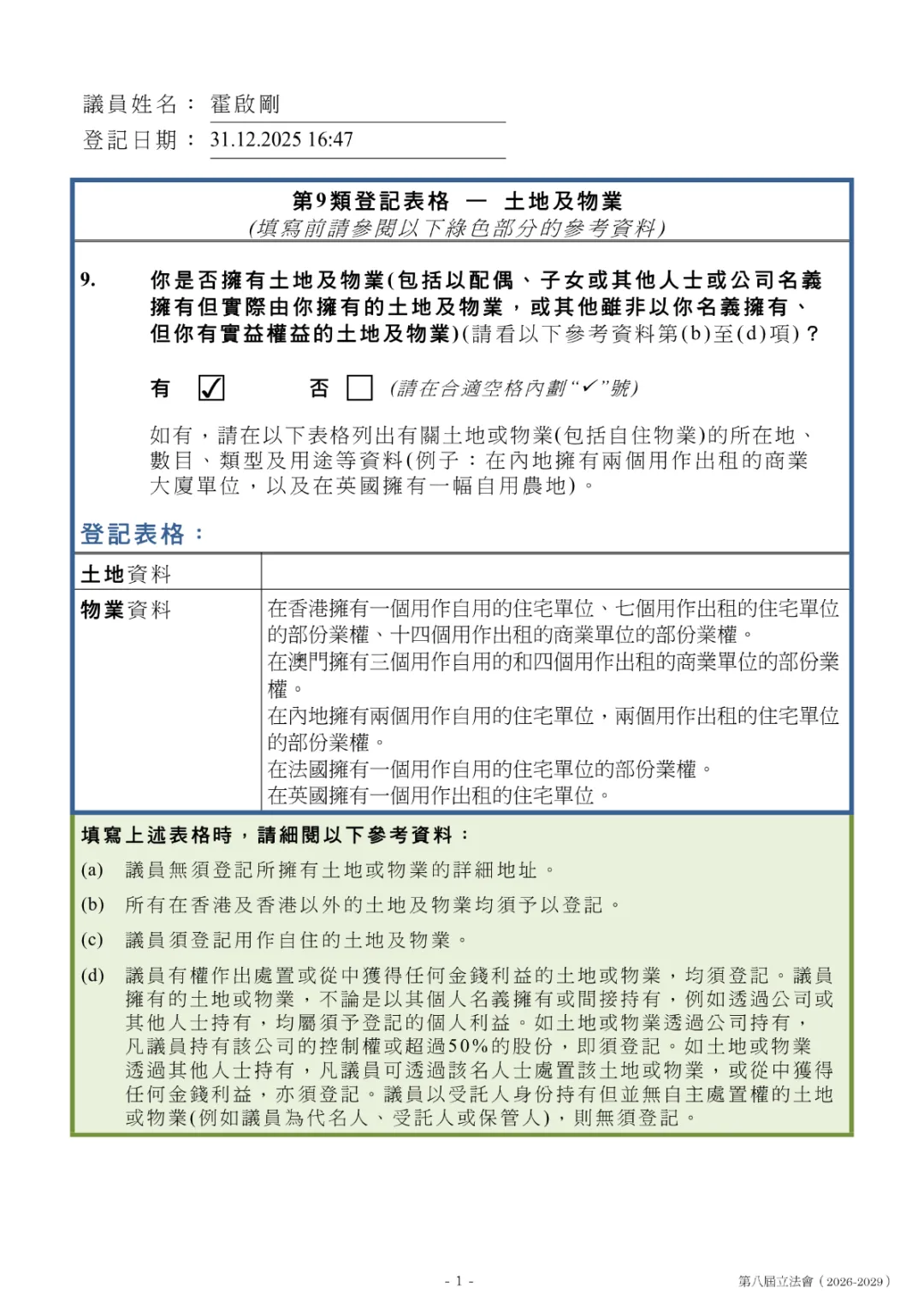 这也完美契合了香港立法会议员的规矩——当选后14天内必须申报个人利益。霍启刚不仅做到了,而且做得超出预期。