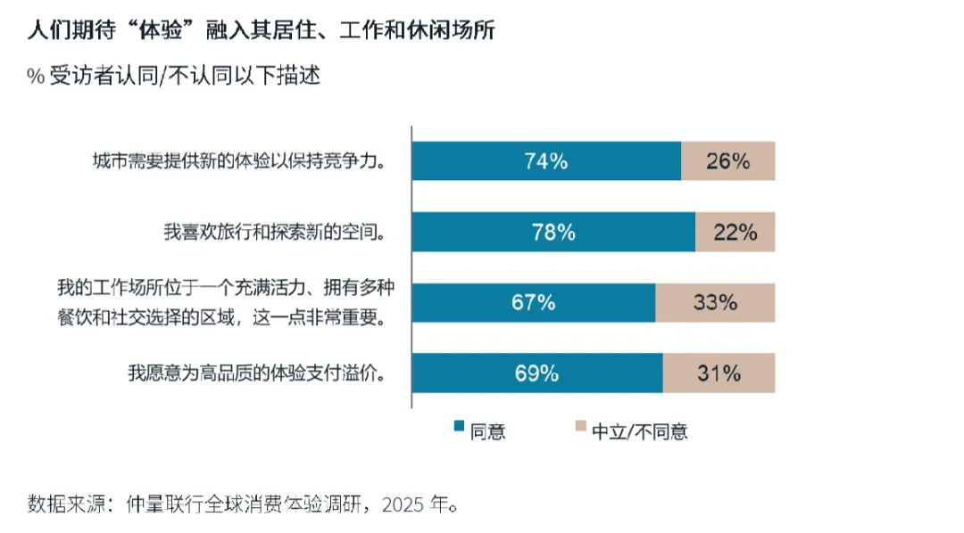 “体验”已经成为溢价核心。图3(全球受访者对“体验”的需求调研,研报第4-5部分)数据惊人:78%的人愿意为高品质体验支付溢价,74%重视工作区域的餐饮和社交配套,73%认为办公场所绿植有助身心健康。更关键的是,位于“生活方式街区”的办公楼能实现32%的租金溢价,25-34岁年轻人中74%希望在活力街区工作。这意味着,投资者再靠“卖空间”赚钱已经行不通,得靠“卖体验”突围。