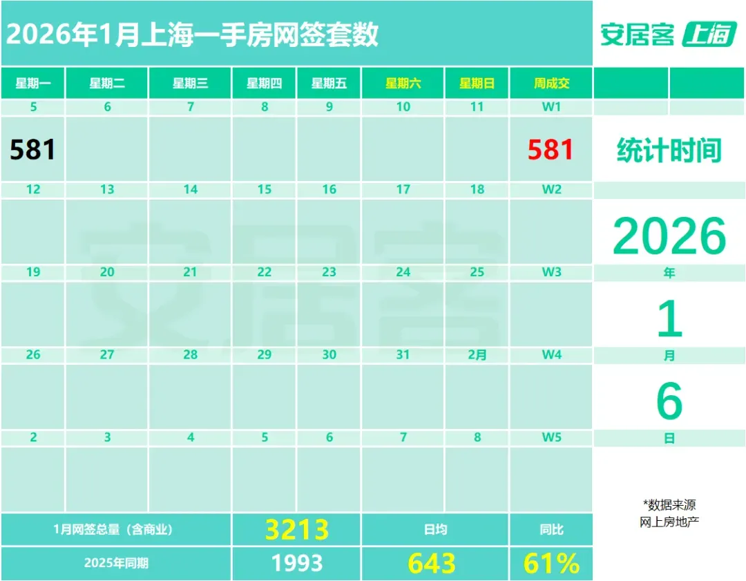 >新房581套,二手房685套!1月5日上海网签数据出炉!