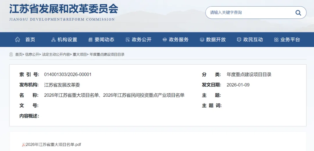 1月12日,据市发展和改革委员会,2026年南京共有61个项目纳入省重大项目,较上年增加7个,实施项目数和年度计划投资均居全省前列,实现量质齐升。其中现代服务业类别里,江苏数智金融产业中心、 南京江北新材料产业中试基地、东南大学江北校区医学与生命科学转化研究中心、南京恒瑞医药区域总部及研发中心、南京国家骨干冷链物流基地仓储配送交易中心一期、南京生物育种钟山实验室、南京玉湖冷链交易中心、京东集团南京研发中心入选实施项目;南京小米华东总部二期入选储备项目。