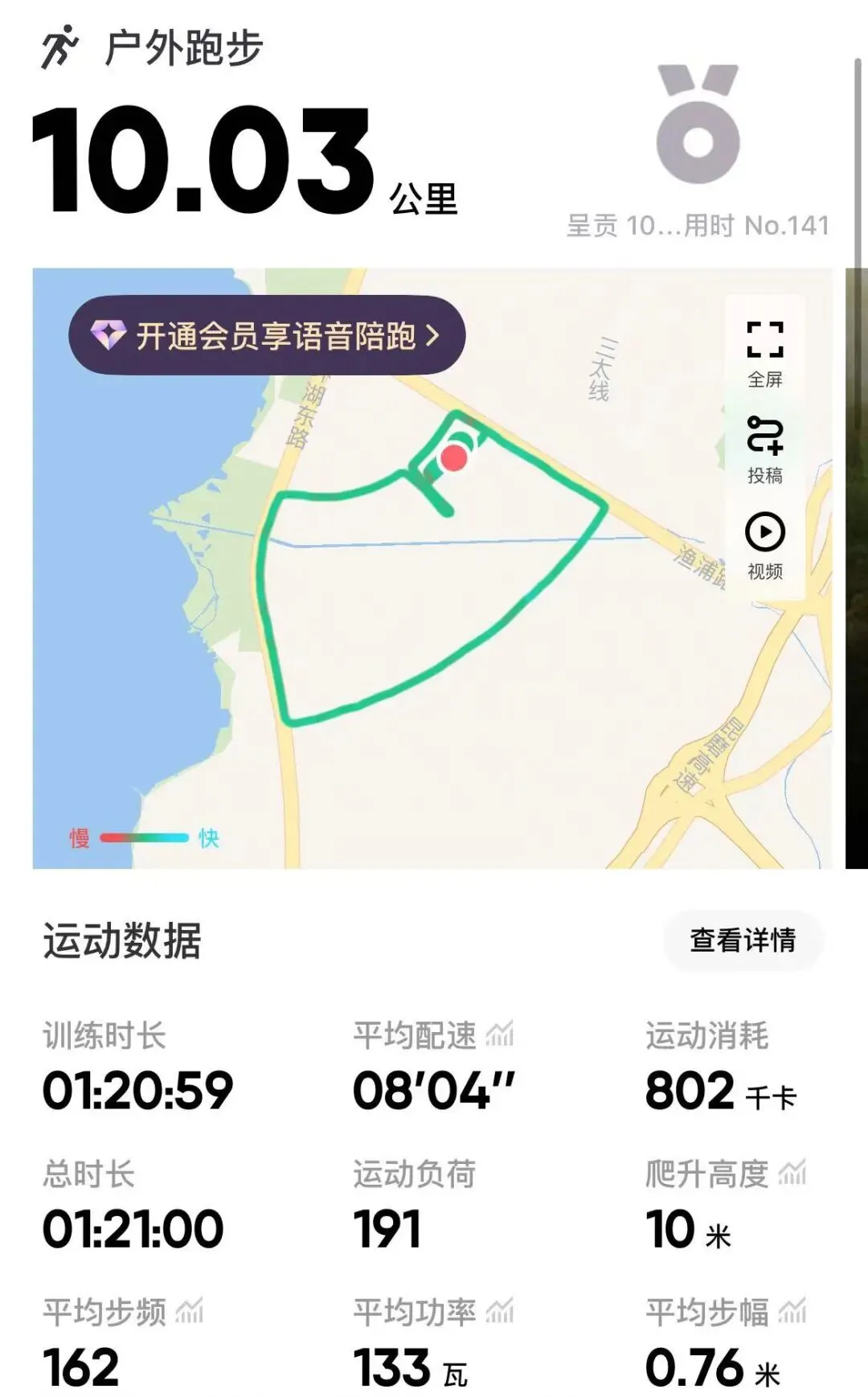 这段时间因为得了颈椎病,神经性的,连着脖子胳膊都疼,也没心情去跑步,也就松弛了😀。现在颈椎好了六成,也要运动起来了,要不然这肥肉又要长上来了!感觉跑步还挺锻炼意志力的,从来没想过我能坚持跑步这么久,跑步一年多,也确实见到了效果,一度瘦到了快十年前的体重,比吃什么减肥产品都管用哈哈。跑步前期很痛苦,一点也不想坚持,那就给自己鼓鼓劲,在坚持一下,你可以的!不知道是不是一直干营销工作,骨子里就是一股不服输的劲儿,定的什么目标就一定要实现,刚开始跑不要定太高,三公里五公里都可以,贵在坚持,跑不动就走,慢慢来,调整呼吸。其实坚持一下下过来了。慢慢的喜欢这个频率,跑步对我来说也还是不轻松,那种跑步还能聊天的我还达不到,只能绷紧每个神经,惯性的腿脚连贯跑,不知不觉就能坚持的越来越久了。跑步的过程对我来说也是一种放空,上班一天,在这一个小时跑步里来好好复盘一些事情和思想,想着想着不知不觉就越跑越多了,速度也就这样连起来了。当快要坚持不住很累的时候,可以大喊“加油”给自己鼓鼓劲,特别有劲儿😊!当然我们这种新手,不要太追求速度,而应该保持状态,慢慢跑坚持下去才是胜利,也是练耐力吧!跑步装备,我这种菜鸟没追求,衣服拼多多的运动服,耳机也是拼多多的几十块的,运动鞋安踏的😄。只要跑起来,就是健康的开始!中年的友友们,你们开跑了没😃!