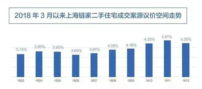 可以看到,全年挂牌的房源有接近5%的议价空间。什么意思?你房子挂出去如果诚心要卖,就必须要让买家可以还价,500万就是要让对方还价25万,就是这么个道理。