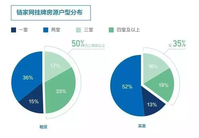租赁房源大户型比较多,买卖的房子小户型比较多。上海的二手房交易市场里,大部分的客户依然在做底层交易。可能很多人不信,上海70%的二手房都是套均300万以内的房子。