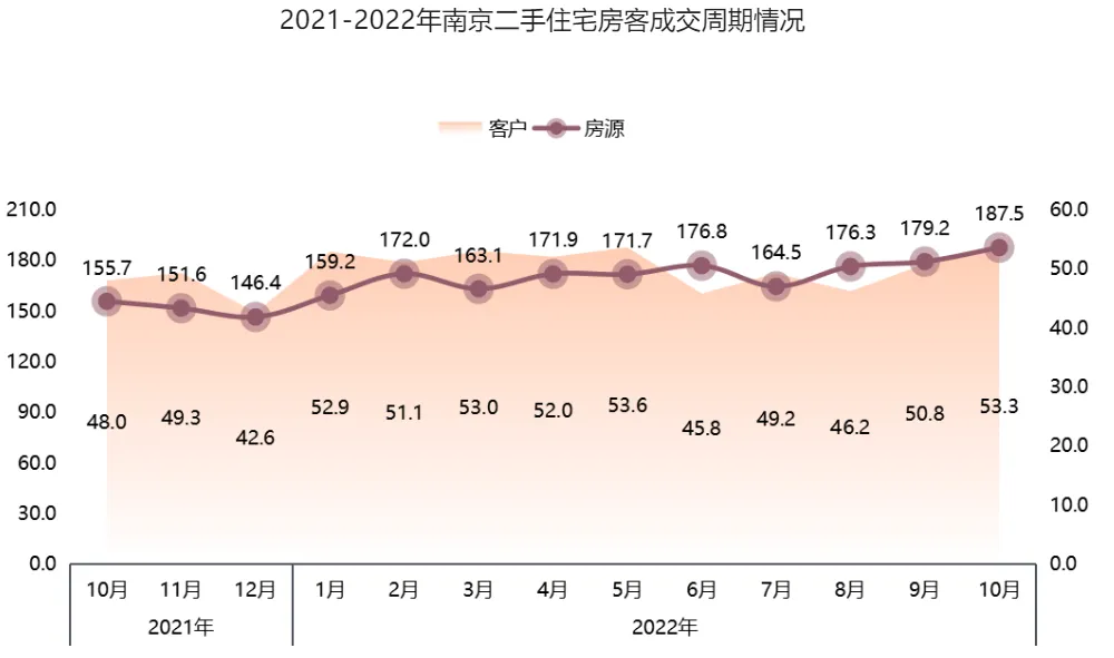 数据来源:我爱我家南京研究院(单位:套、元/㎡)对比苏州,南京的二手房挂牌增量虽然少一些,但成交也表现出跟苏州一样的走势。从7月初到10月初,南京二手房挂牌量增长9000套至14.76万套,平均每天有约150套新增挂牌房源。而2019-2021年同期,南京的二手房挂牌量分别为7万套、10万套、13万套。据我爱我家南京研究院统计,南京7月交易量突破8000套创下今年月度新高,8月成交量近15个月来首次实现同比正向增幅,但9月全市交易量仅6757套,环比下跌10.5%;10月成交量进一步下降至5567套[3]。中指研究院南京分院高级分析师赵芊10月10日告诉每经头条记者,在二手房置换退个税的政策加持下,后期南京二手房挂牌量或将继续走高,但是价格更多是回归理性。“之前由于市场较好,新房摇号中签率低,部分板块新房与二手房价格倒挂较明显,二手房挂牌价较高。随着市场周期的变化,核心板块二手房价格依然比较坚挺,远郊板块价格下降较为明显。”从卖方市场到买方市场后,二手房客户不仅有更多的房源对比,在价格谈判上也更加强势。张华就遇到过几个原本对房源很满意,但压价压得很夸张的客户。