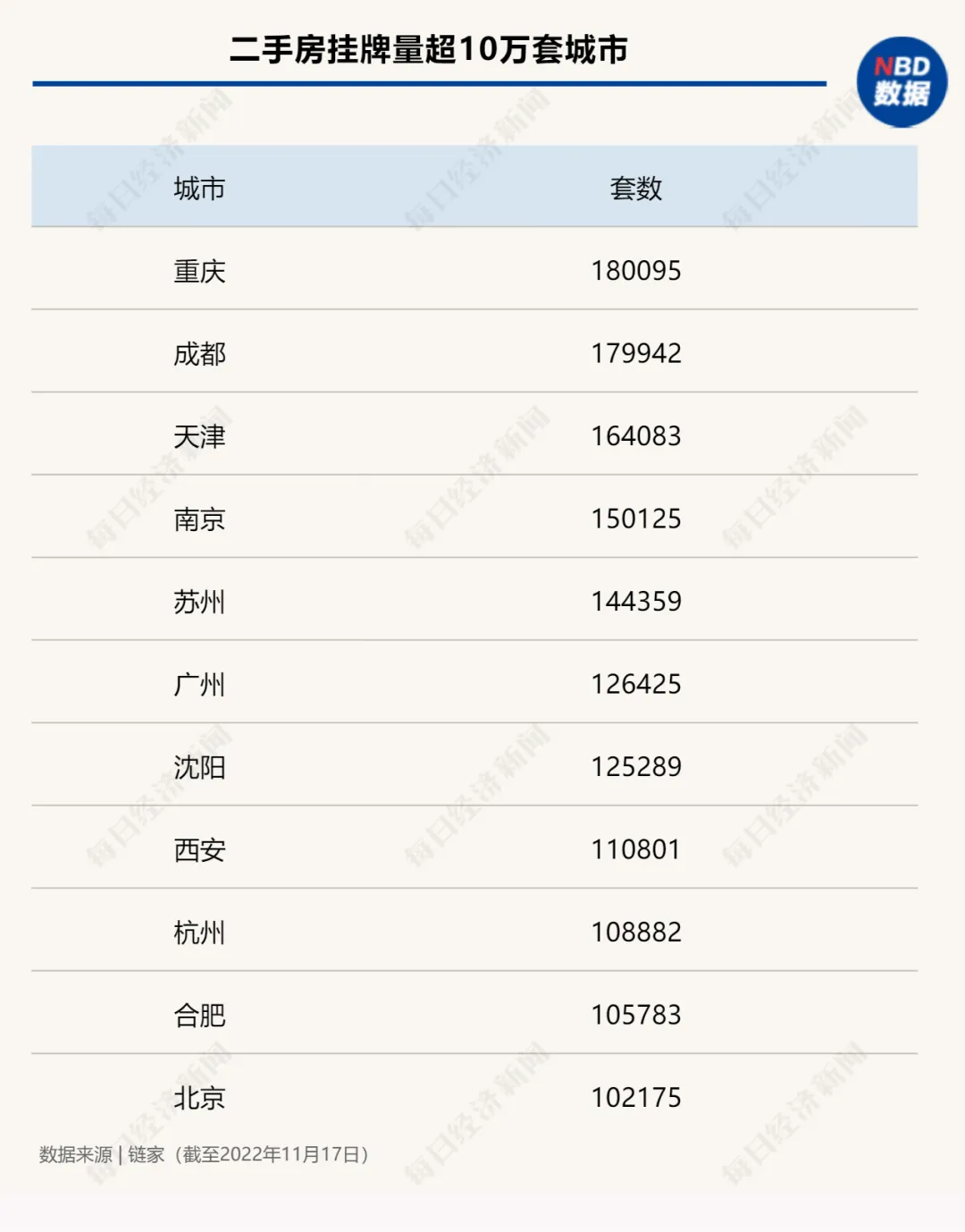 二手房难卖!多个城市待售挂牌量达10万-15万套。北京、重庆、天津、苏州、广州、南京、西安等10余个城市二手房挂牌量均超过10万套,其中重庆、天津等多个城市挂牌量甚至均突破15万套。
