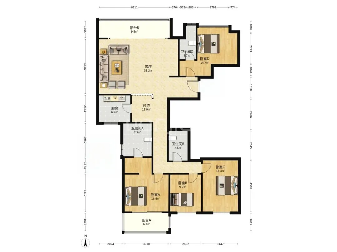 户型太有个性了,客厅、主卧全在北边,