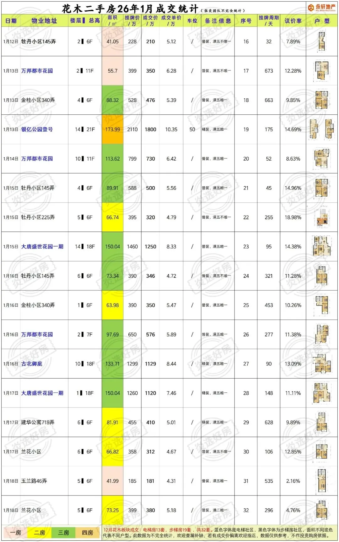 截至18日,花木板块二手房累计成交32套,已超越上月全月31套的成交量,我们在一线的市场体感是后劲十足,本月板块单月成交新高基本大概率会达成。