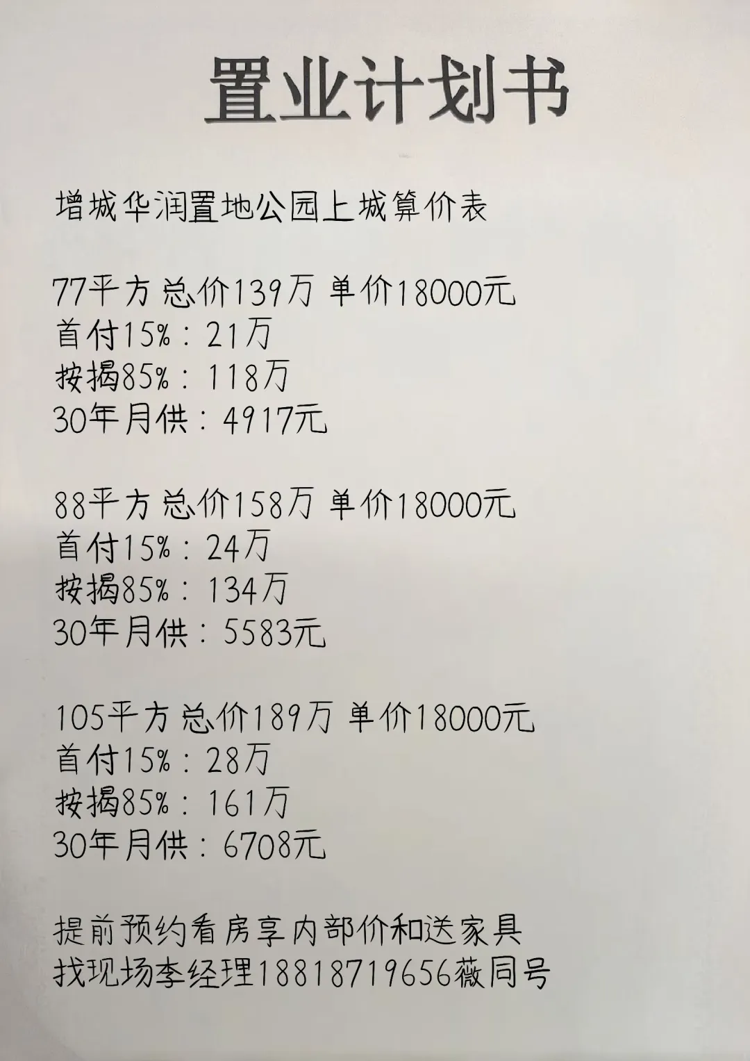 增城华润置地公园上城算价表#广州房产 #增城房票 #黄埔