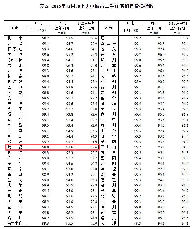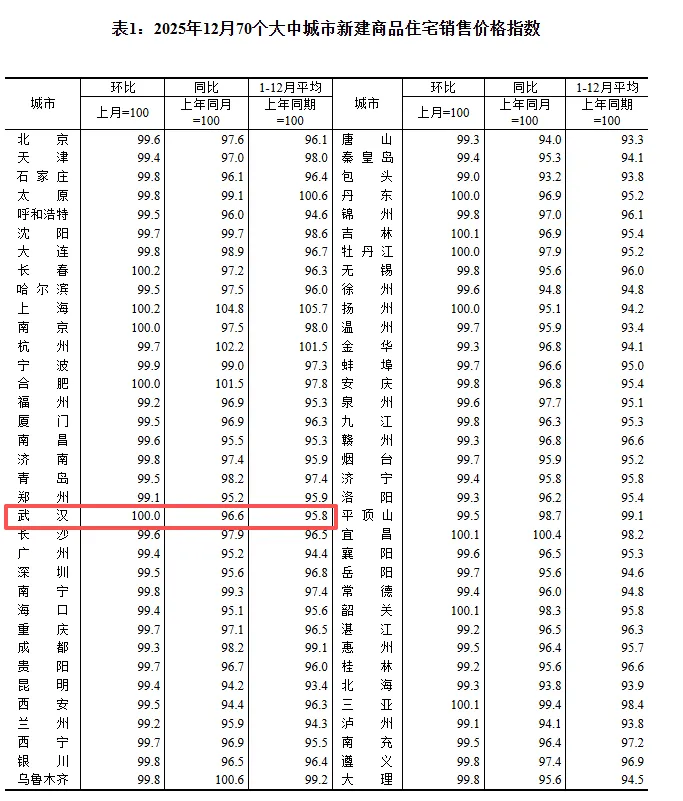 根据国家统计局最新数据,2025年12月,武汉新房价格环比持平,终结了此前连续8个月的下跌趋势。