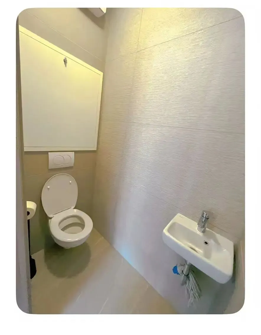 独立卫生间,浴缸 + 洗衣机齐全,实用性强