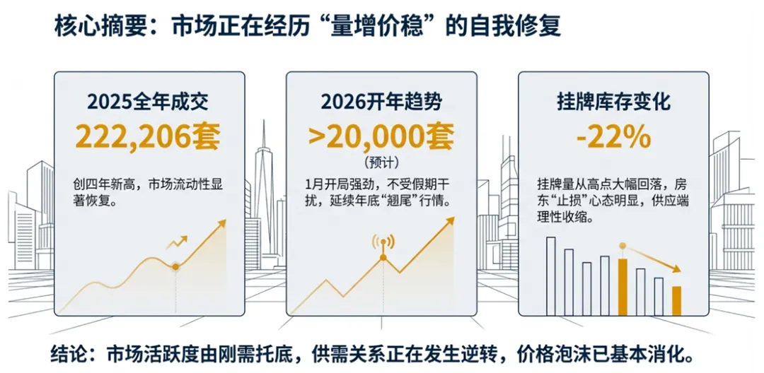 2025年底至2026年初的上海二手房市场,呈现出一个非常值得研究的状态:没有强刺激政策、没有情绪亢奋,却出现了成交回暖、库存回落、房东行为变化的同步信号。01